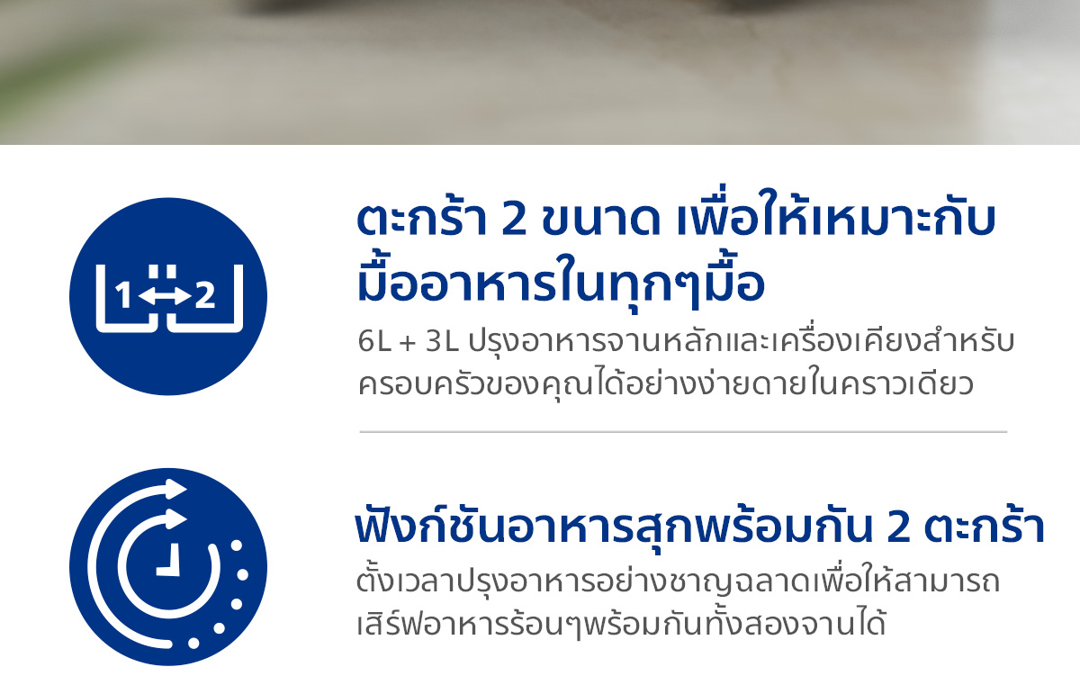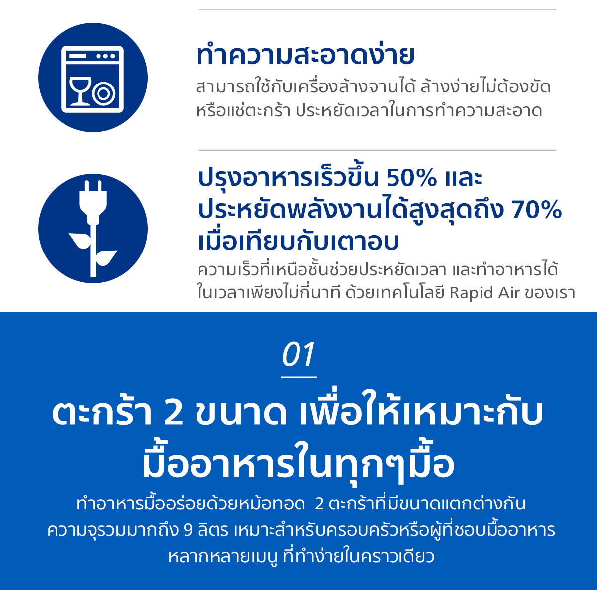 | ความจุรวม | 9 ลิตร (Dual Basket - 2 ลิ้นชัก) |