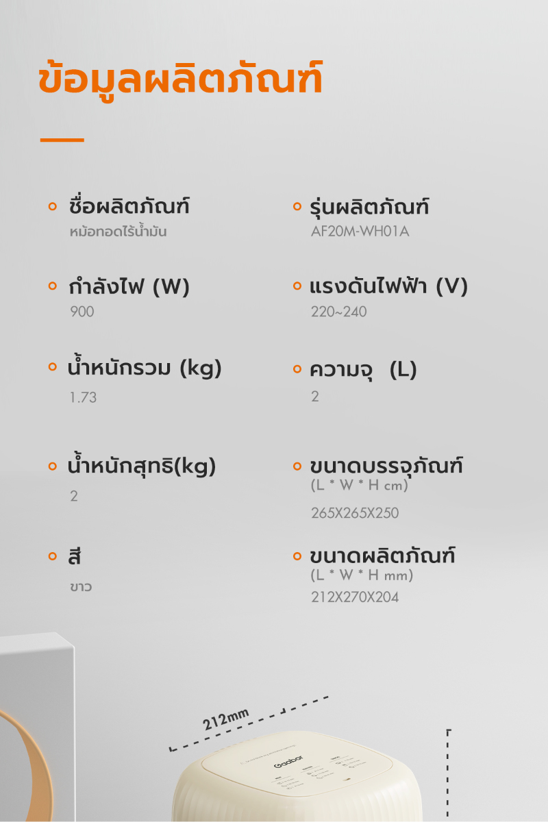 | ประเภทสินค้า | หม้อทอดไร้น้ำมัน (Air Fryer) |