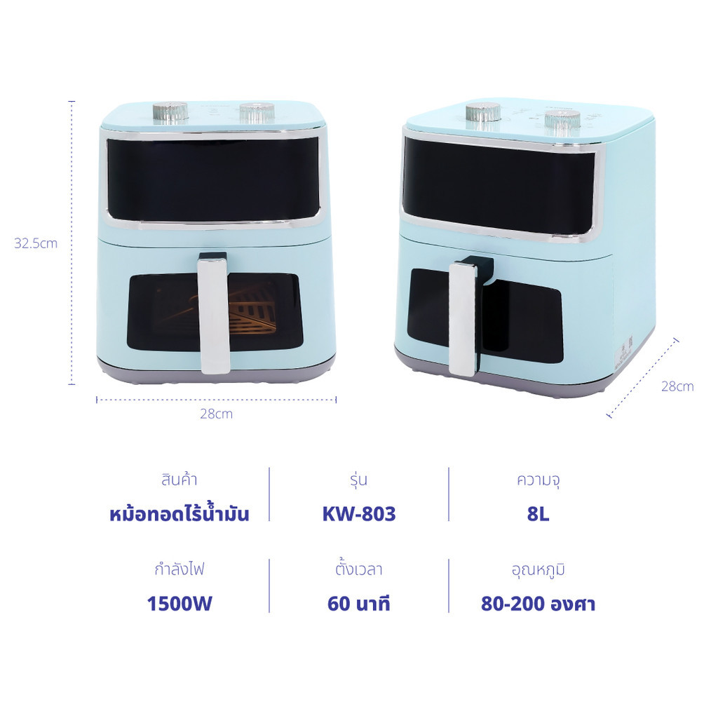 KASHIWA รุ่น KW-803 หม้อทอดไร้น้ำมัน ขนาด 8 ลิตร หม้อทอด air fryer มีช่องใสมองเห็นอาหาร หม้ออบลมร้อน