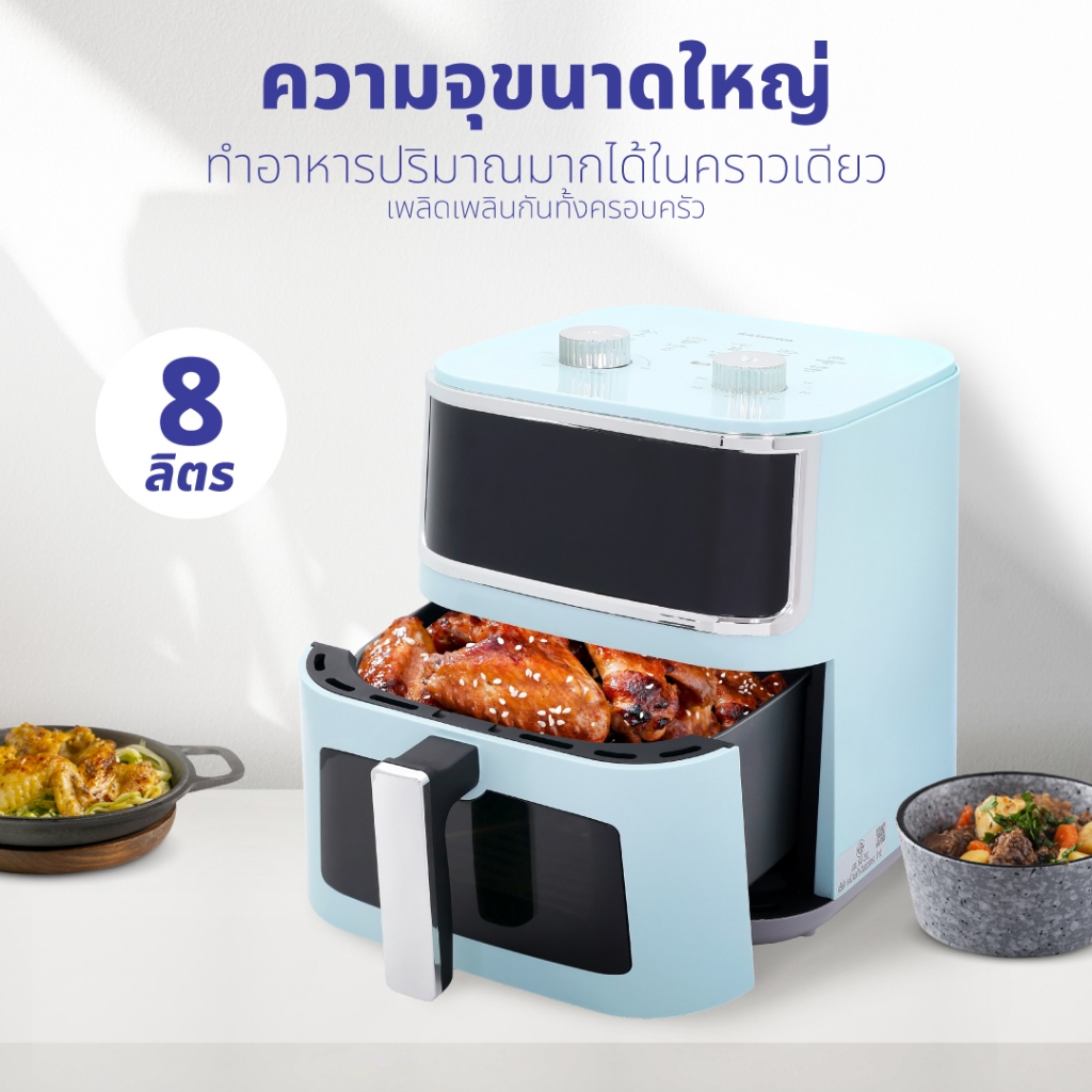 สิ่งที่พิเศษกว่า หม้อทอดไร้น้ำมันขนาดเล็ก ทั่วไปคือความจุขนาดใหญ่ 8 ลิตร ทำให้คุณทำไก่ย่างทั้งตัว หรือเฟรนช์ฟรายชุดใหญ่ได้ในครั้งเดียว และที่ว้าวสุด ๆ คือ มีช่องใสมองเห็นอาหาร ทำให้คุณเช็กความสุกของอาหารได้ตลอดเวลาโดยไม่ต้องดึงลิ้นชักออกมาดูบ่อย ๆ!