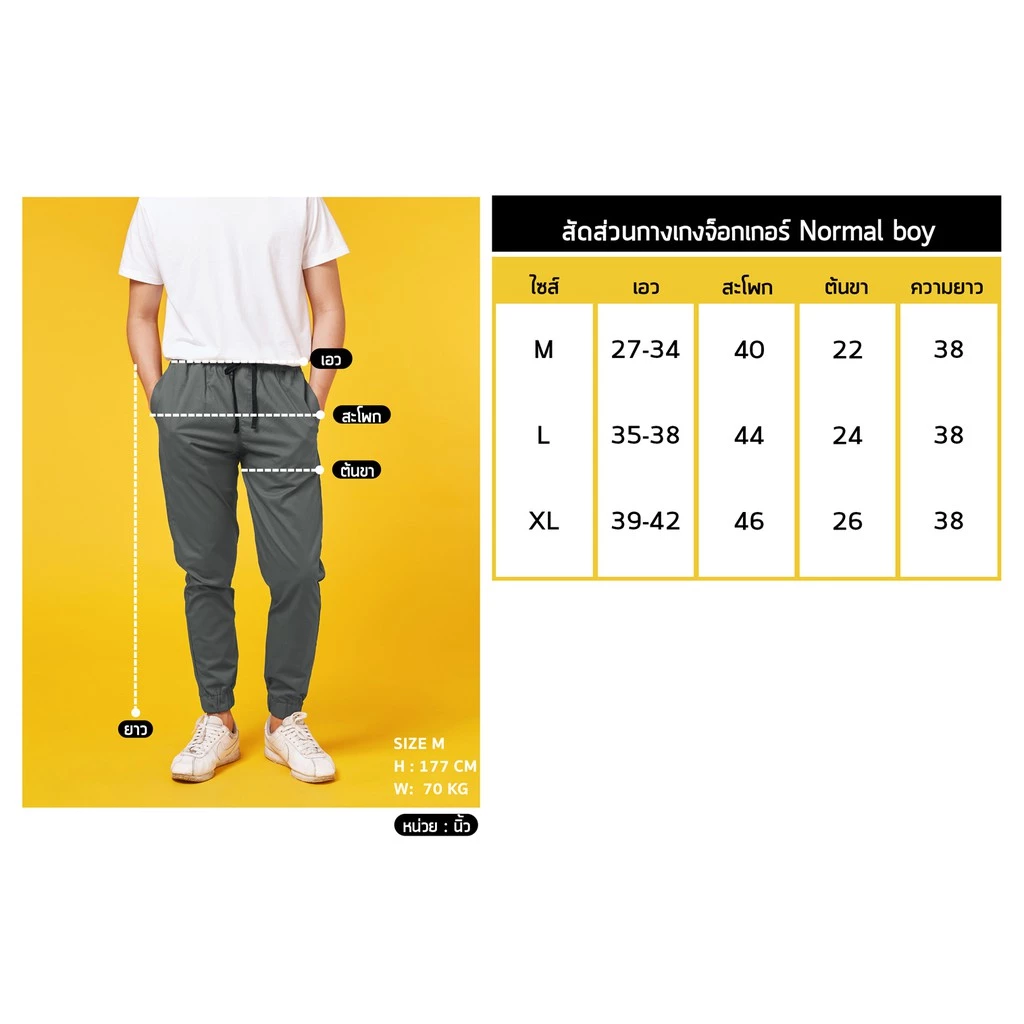 Normal Boy กางเกงขายาวจ็อกเกอร์ กางเกงเอวยืด ขาจั๊ม ผ้าชิโน่ สีกากี เทาเข้ม กรมท่า ดำ น้ำตาลเข้ม เขียวขี้ม้า