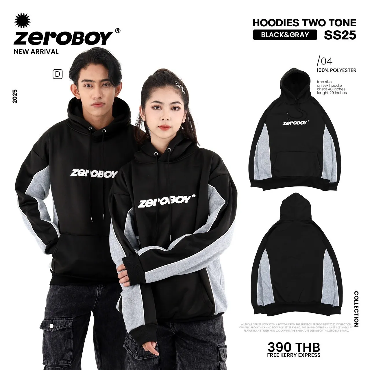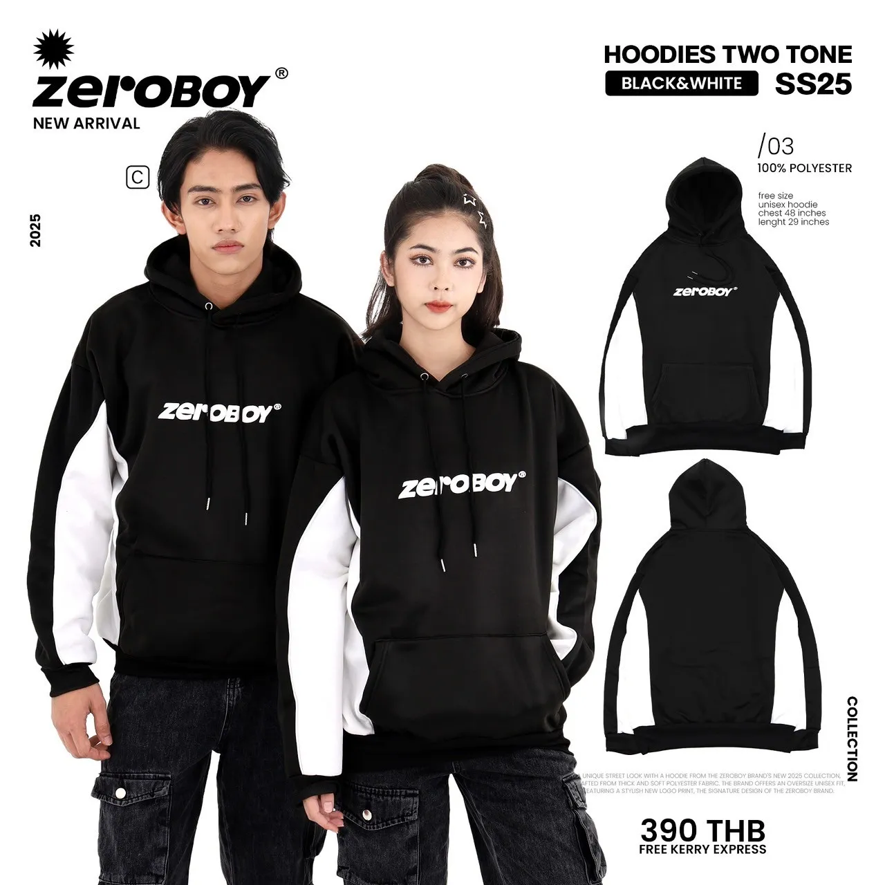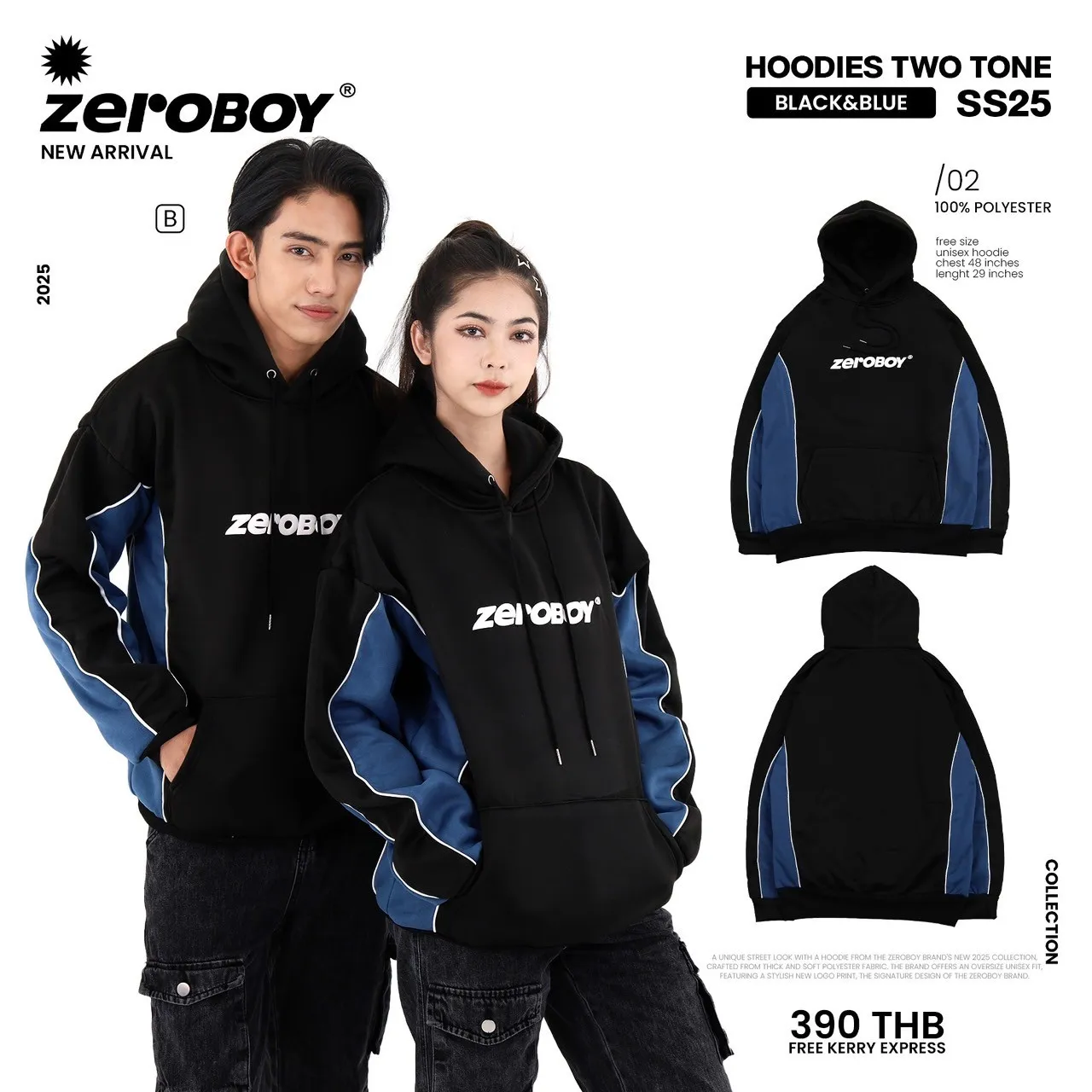 ZEROBOY - Hoodies Two Tone SS25 สีดำแถบขาว สีดำแถบน้ำตาล สีดำแถบเทา สีดำแถบเขียว สีดำแถบน้ำเงิน สีดำแถบดำ
