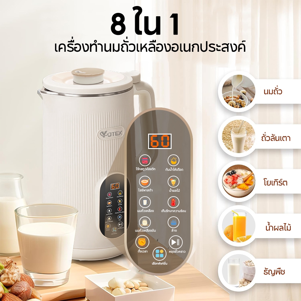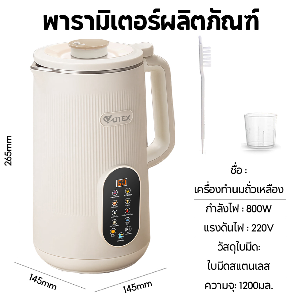 Yotex เครื่องทำน้ำเต้าหู้: อยากมีน้ำเต้าหู้สดใหม่หอมกรุ่นทุกเช้า แต่ขี้เกียจแช่ถั่ว? Yotex ช่วยได้! ทำเองง่าย ๆ ใน 20 นาที ไม่ต้องแช่ ไม่ต้องกรอง! ไม่ใช่แค่ทำน้ำเต้าหู้ แต่ทำนมธัญพืช, โยเกิร์ต, น้ำผลไม้ได้หมด! ปลอดภัยด้วยวัสดุ BPA Free, ทำความสะอาดง่าย, แถมเสียงเงียบ! คุ้มค่าขนาดนี้ รออะไร สั่งเลย! รับประกัน 1 ปีเต็ม!