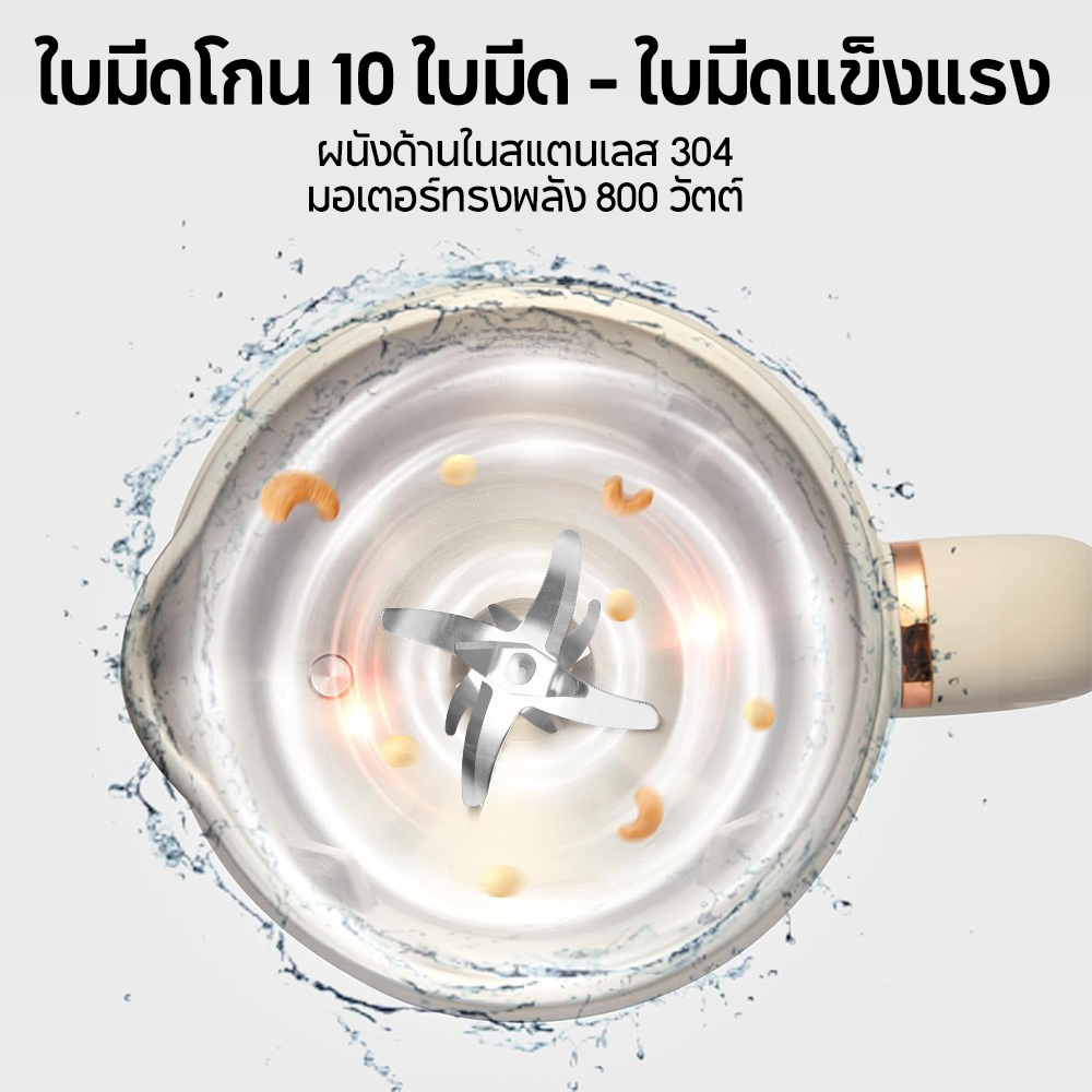 ไม่ใช่แค่น้ำเต้าหู้เท่านั้น! เครื่องปั่นน้ำธัญพืช รุ่นนี้ยังสามารถทำเมนูเพื่อสุขภาพได้หลากหลาย เช่น นมธัญพืช, โยเกิร์ต, น้ำผลไม้, หรือแม้แต่ปั่นน้ำแข็งก็ทำได้สบาย ๆ ด้วยใบมีดสแตนเลส 10 ใบมีด ที่คมกริบและทรงพลัง ทำให้ได้เครื่องดื่มที่เนียนนุ่ม รสชาติดีกว่าที่เคย ผนังด้านในทำจากสแตนเลส 304 ปลอดภัย ทนทาน ทำความสะอาดง่าย แถมยังไม่ต้องกังวลเรื่องเสียงรบกวน เพราะทำงานเงียบมากเพียง 78 เดซิเบล ให้คุณทำเครื่องดื่มอร่อย ๆ ได้ทุกเวลาที่ต้องการ