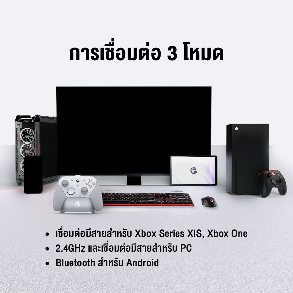 | āļāļēāļĢāđāļāļ·āđāļāļĄāļāđāļ | āđāļāļāļĄāļĩāļŠāļēāļĒ (āļŠāļģāļŦāļĢāļąāļ Xbox), 2.4G āđāļĨāļ° Bluetooth (āļŠāļģāļŦāļĢāļąāļ Android) |