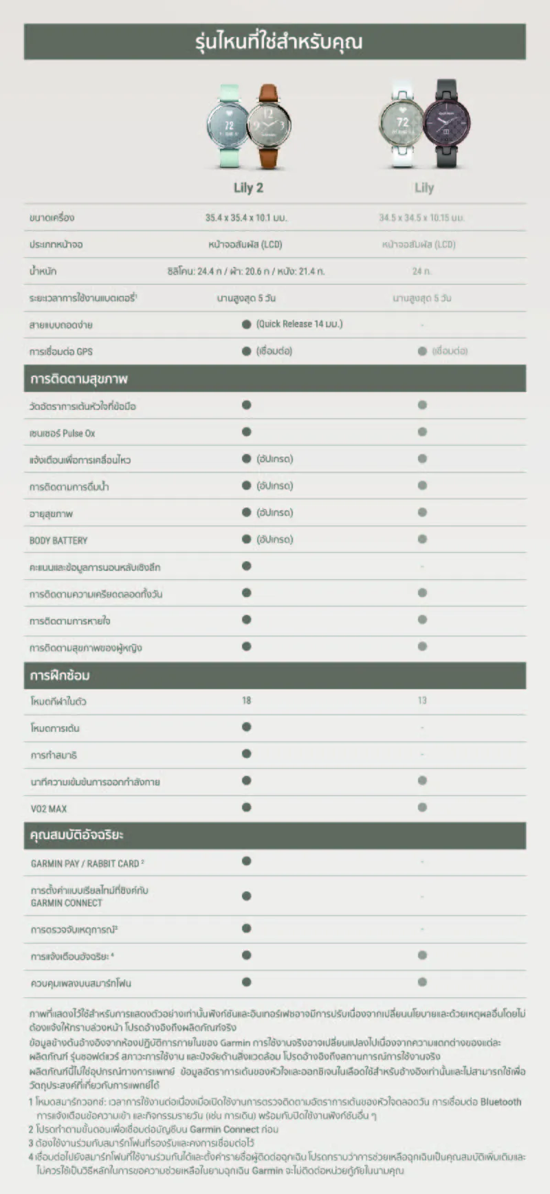 Garmin Lily 2 Series เหมาะสำหรับ:
