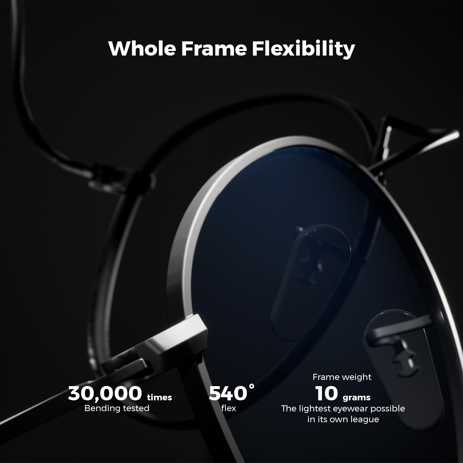 A: กรอบแว่นทำจาก Shape-memory alloy ที่มีความยืดหยุ่นและทนทานสูงมาก สามารถบิดงอได้ถึง 540 องศา ทำให้โอกาสที่จะหักจากการนั่งทับหรือทำตกเป็นไปได้ยากมากค่ะ