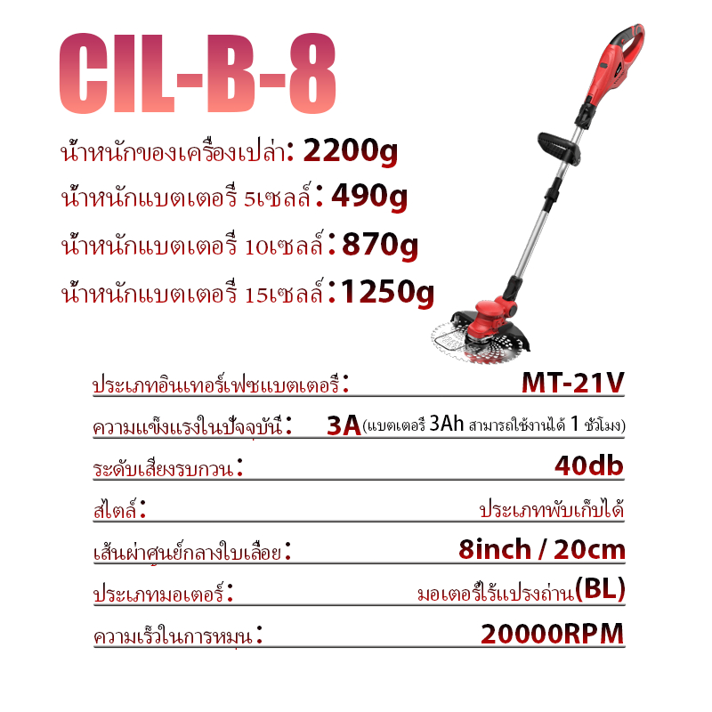 CANLIDI รุ่น CIL-B-8 เครื่องตัดหญ้าไฟฟ้า เครื่องตัดหญ้าใช้แบตเตอรี่ ตัดหญ้า กิ่งไม้ อุปกรณ์ครบชุด พร้อมแบตเตอรี่ MT-21V