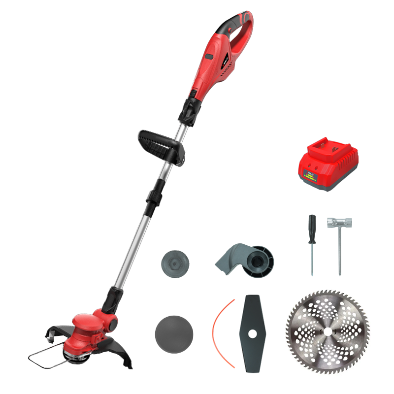 เลือกใบมีด: เลือกใบมีดที่เหมาะสมกับประเภทงาน (ใบมีดพลาสติกสำหรับหญ้านุ่ม ใบมีดเหล็กสำหรับหญ้าหนาหรือกิ่งไม้เล็ก) และติดตั้งให้แน่น