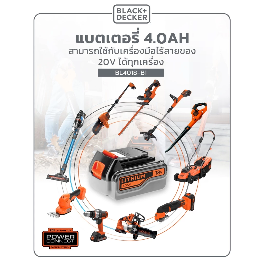 | อุปกรณ์ในชุด | เครื่องตัดหญ้า, แบตเตอรี่ 4Ah x 2 ก้อน |