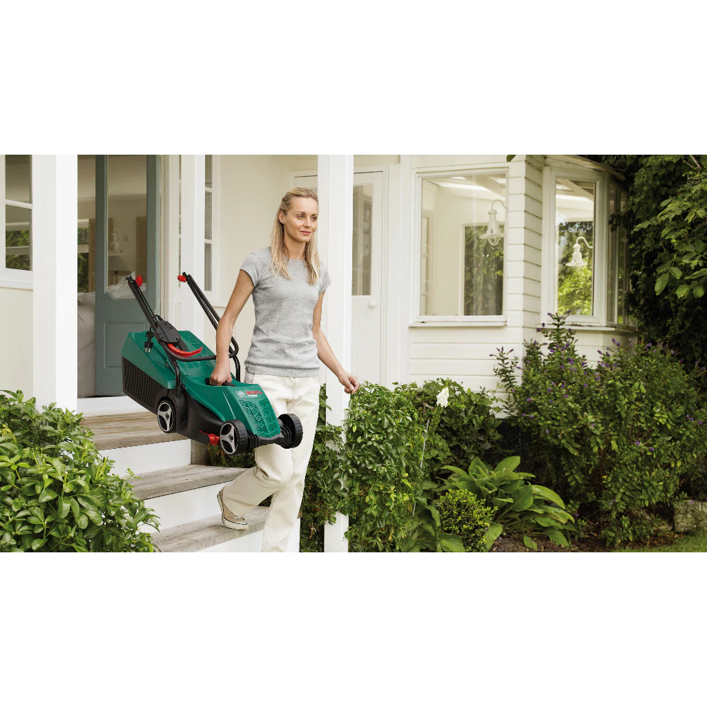 BOSCH ROTAK 32 เครื่องตัดหญ้าไฟฟ้า คือตัวเลือกที่ใช่สำหรับทุกคนที่ต้องการสนามหญ้าที่สวยงามโดยไม่ต้องเหนื่อยล้า ด้วยดีไซน์ที่ทันสมัย สีเขียวสดใส มาพร้อมกับมอเตอร์ Powerdrive 1200 W อันทรงพลัง ที่ให้ประสิทธิภาพการตัดหญ้าที่ยอดเยี่ยม แม้ในสภาวะที่หญ้าหนาหรือยากลำบากก็เอาอยู่! เครื่องตัดหญ้ารุ่นนี้ถูกออกแบบมาให้มีน้ำหนักเบาเพียง 6.8 กก. ทำให้เคลื่อนย้ายและใช้งานได้อย่างคล่องตัว ไม่ต้องออกแรงมาก เหมาะสำหรับสนามหญ้าขนาดเล็กถึงขนาดกลาง ตัวเครื่องมาพร้อมกับหวีหญ้าที่เป็นนวัตกรรมใหม่ ช่วยให้คุณสามารถตัดหญ้าได้เรียบกริบชิดขอบ ไม่ว่าจะเป็นริมถนน รั้ว หรือกำแพง ก็เก็บงานได้เนี๊ยบกริบ นอกจากนี้ยังมีกล่องเก็บเศษหญ้าขนาด 31 ลิตร ที่ช่วยให้การกำจัดเศษหญ้าเป็นเรื่องง่าย ลดเวลาในการเททิ้ง และยังเพิ่มความสะดวกสบายในการทำงานของคุณให้มากยิ่งขึ้น