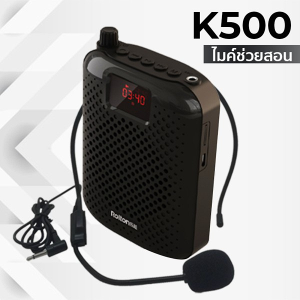 Rolton K500 มีบลูทูธ รองรับ FM จอ LED ไมค์ช่วยสอน ไมค์สอนหนังสือ ลำโพงพกพา ไมค์ลอย