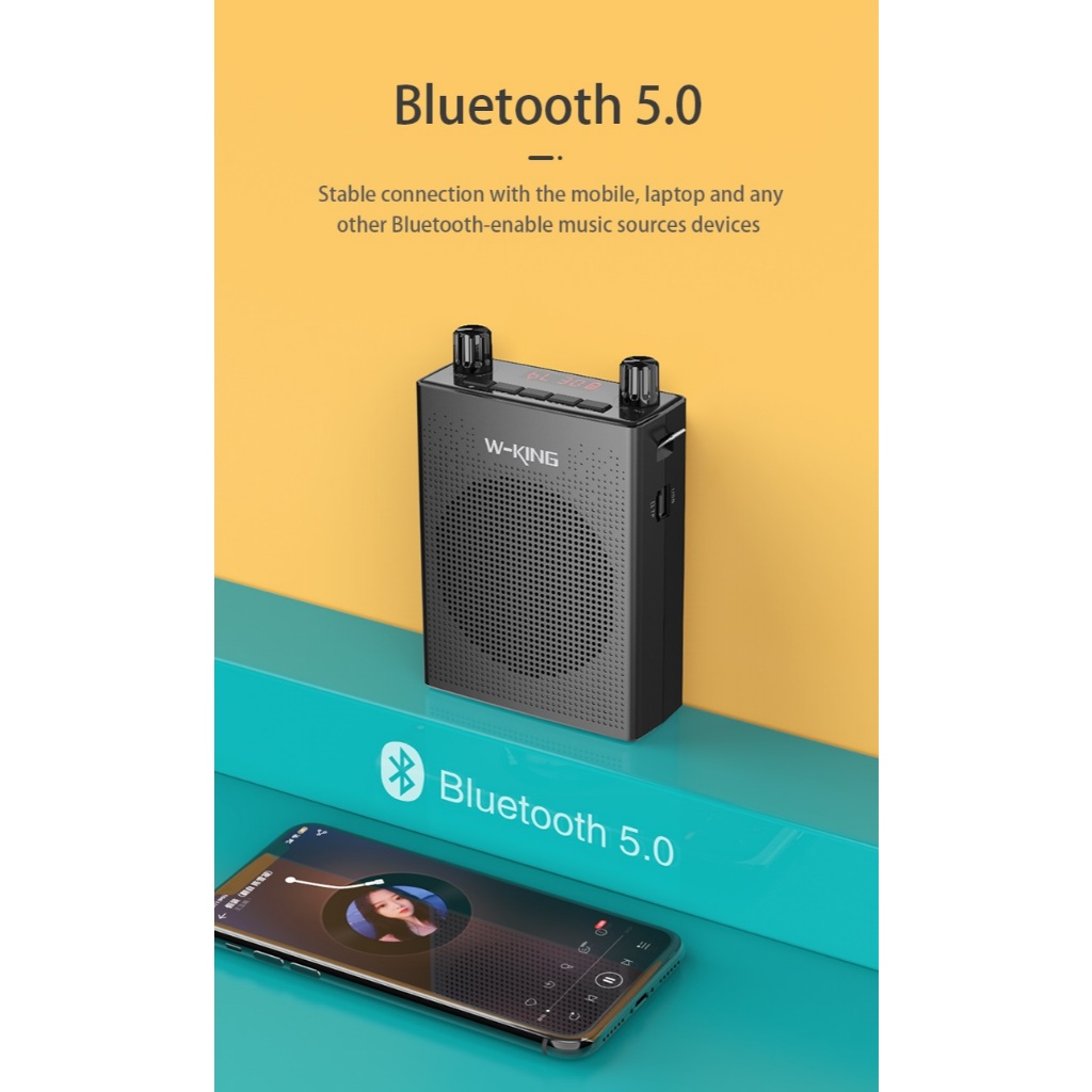 มาพร้อม ไมค์คาดหัวไร้สาย (ไมค์ลอยไร้สาย) ที่ให้คุณเคลื่อนไหวได้อย่างอิสระ ไม่ต้องกังวลเรื่องสายพันกัน แถมแบตเตอรี่ก็อึดสุด ๆ ใช้งานต่อเนื่องได้ยาวนานถึง 15 ชั่วโมง คุณสามารถเชื่อมต่อผ่าน Bluetooth 5.0 เพื่อเปิดเพลงประกอบการสอน หรือเสียบ USB/TF Card เพื่อเล่นไฟล์เสียงได้ทันที มีฟังก์ชัน วิทยุ FM และสามารถ เล่นซ้ำเสียงพูด หรือ บันทึกเสียง ได้อีกด้วย! W-King KS16 จะทำให้การบรรยายของคุณน่าสนใจและมีประสิทธิภาพมากขึ้นอย่างแน่นอน