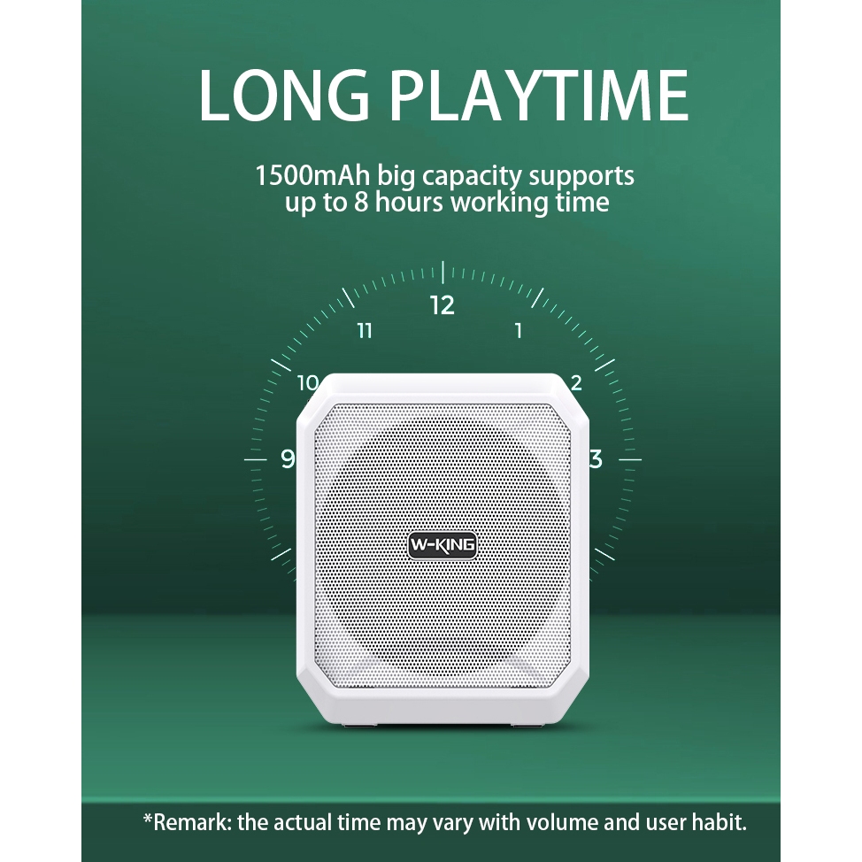 The W-King KS01 is a must-have portable voice amplifier for teachers, guides, and trainers. It is small and light but delivers clear sound. You can use it for hours, so you don't worry about power. It comes with a headset mic for hands-free speaking. This device is your best partner to save your voice and make your teaching better. Buy it now!