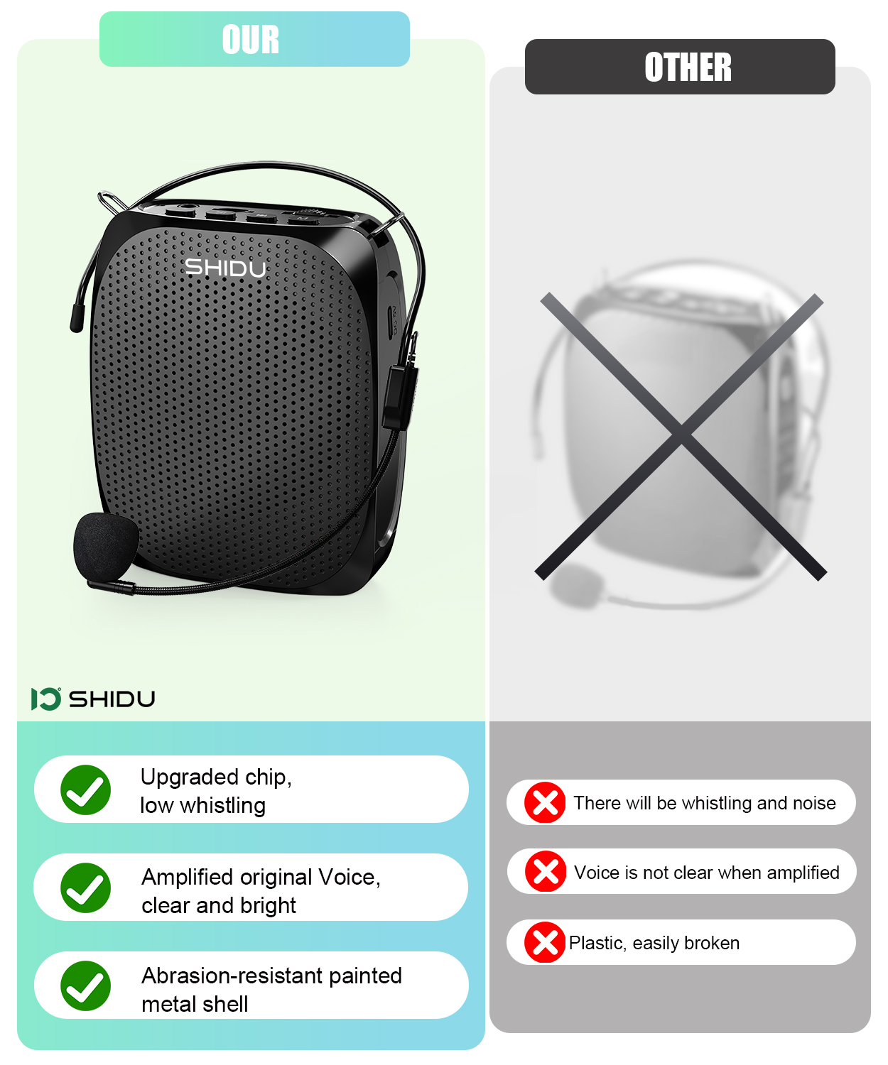 เบื่อไหมกับอาการเจ็บคอ เสียงแหบ หรือต้องตะโกนเวลาสอน บรรยาย หรือนำทัวร์? อย่าปล่อยให้ "เสียง" เป็นอุปสรรคในการถ่ายทอดความรู้และความมั่นใจอีกต่อไป! SHIDU S258 ไมค์ลำโพงพกพา คือคำตอบที่คุณตามหา ช่วยขยายเสียงให้ดังกังวาน ใส ชัดเจน โดยไม่ต้องออกแรงมาก และที่สำคัญ! เรามีสินค้าพร้อมส่งมอบประสิทธิภาพระดับพรีเมียมให้คุณได้เป็นเจ้าของทันที!