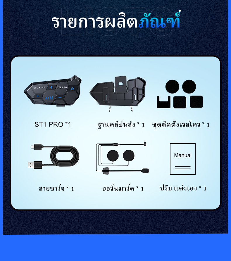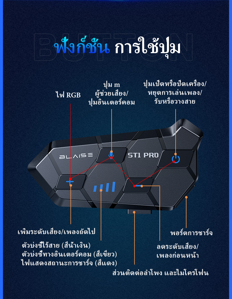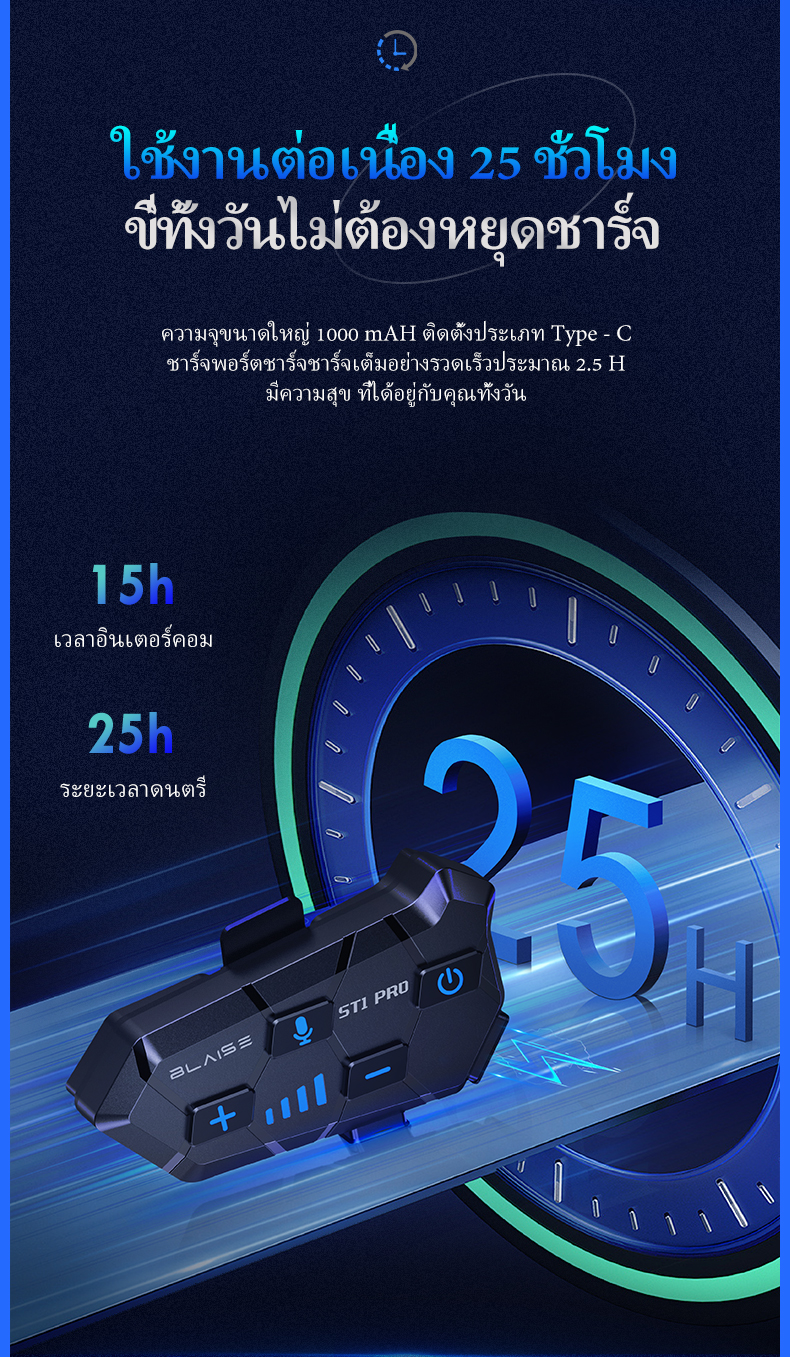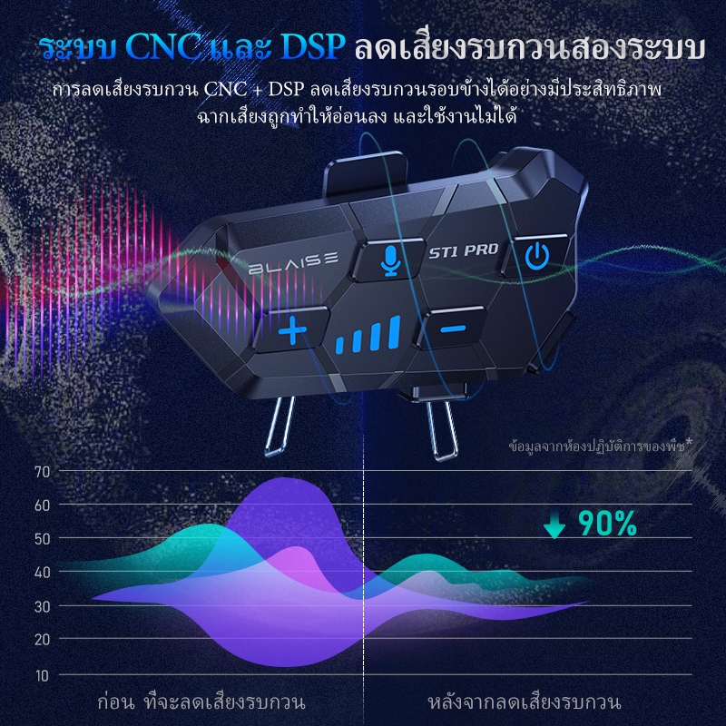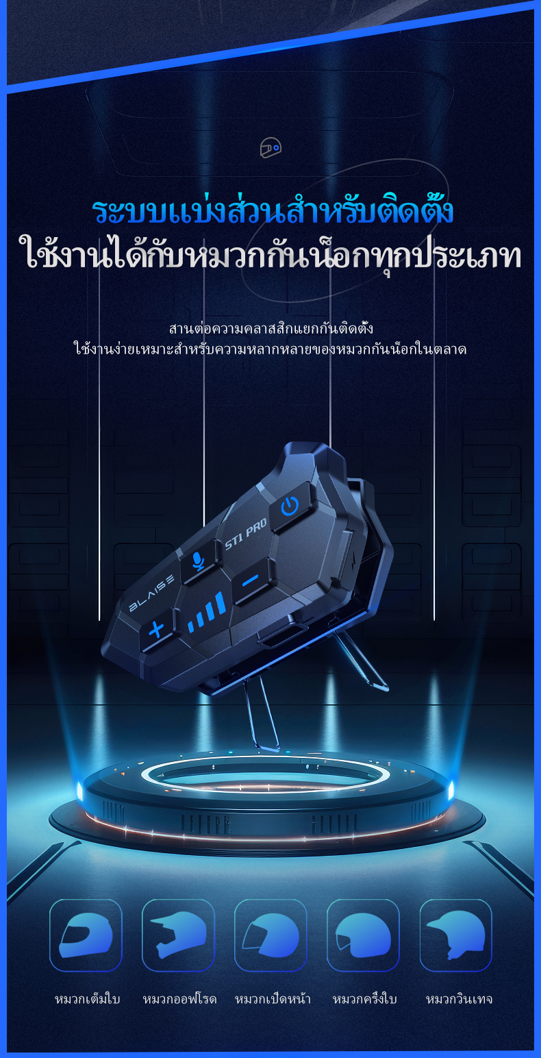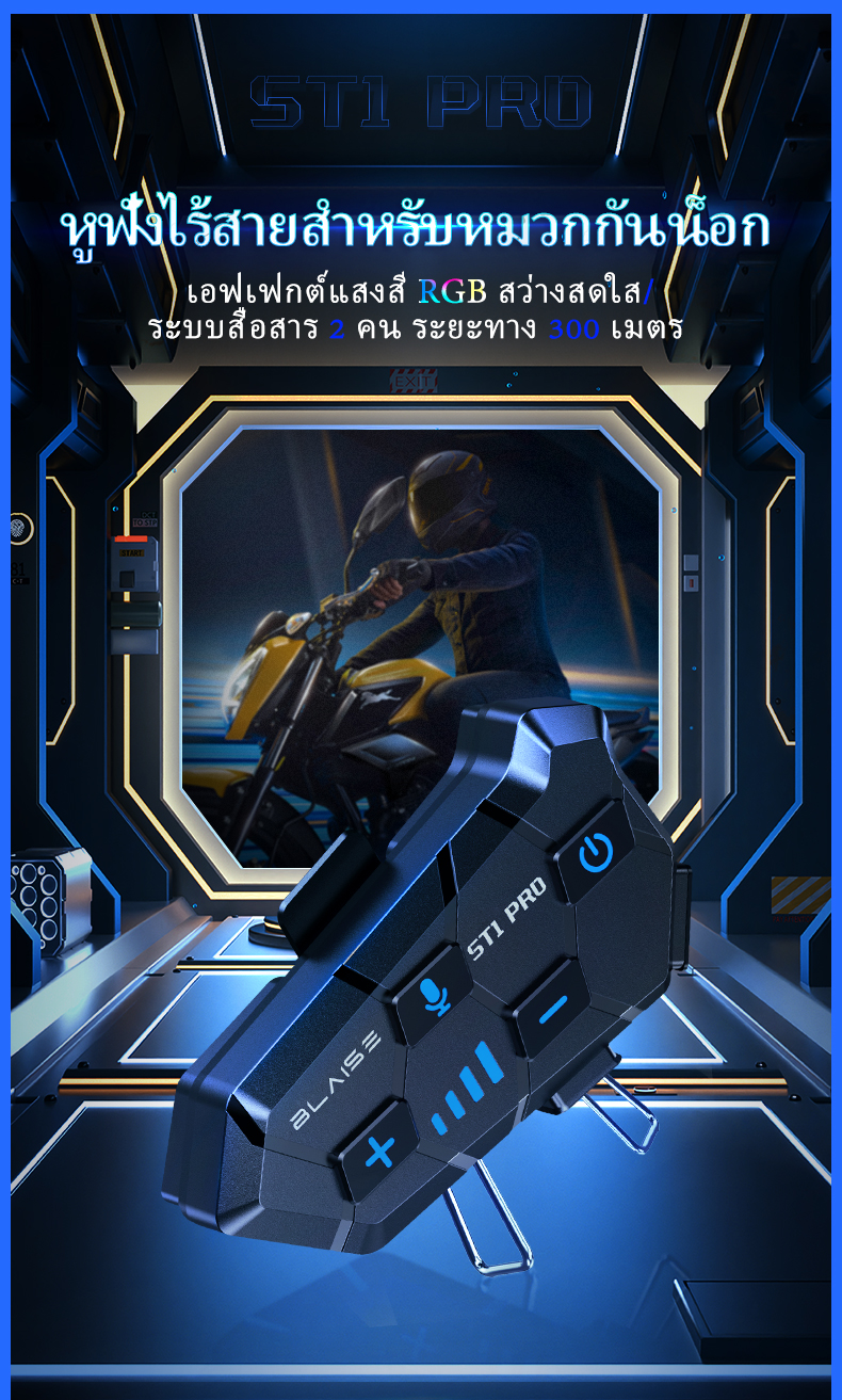 BLAISE ST1 PRO หูฟังบลูทูธติดหมวกกันน็อค หูฟังบลูทูธหมวกกันน็อคสำหรับผู้ขับขี่ 2 คน