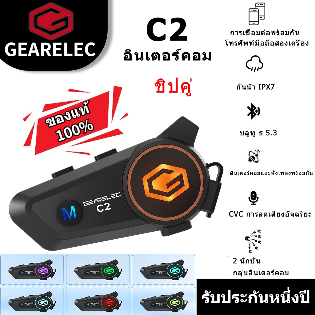 GEARELEC C2 ชุดหูฟังบลูทูธ BT5.3 อินเตอร์คอม กันน้ำ IPX7 ลดเสียงรบกวนอัจฉริยะ รองรับการฟังเพลงระหว่างการโทรอินเตอร์คอม