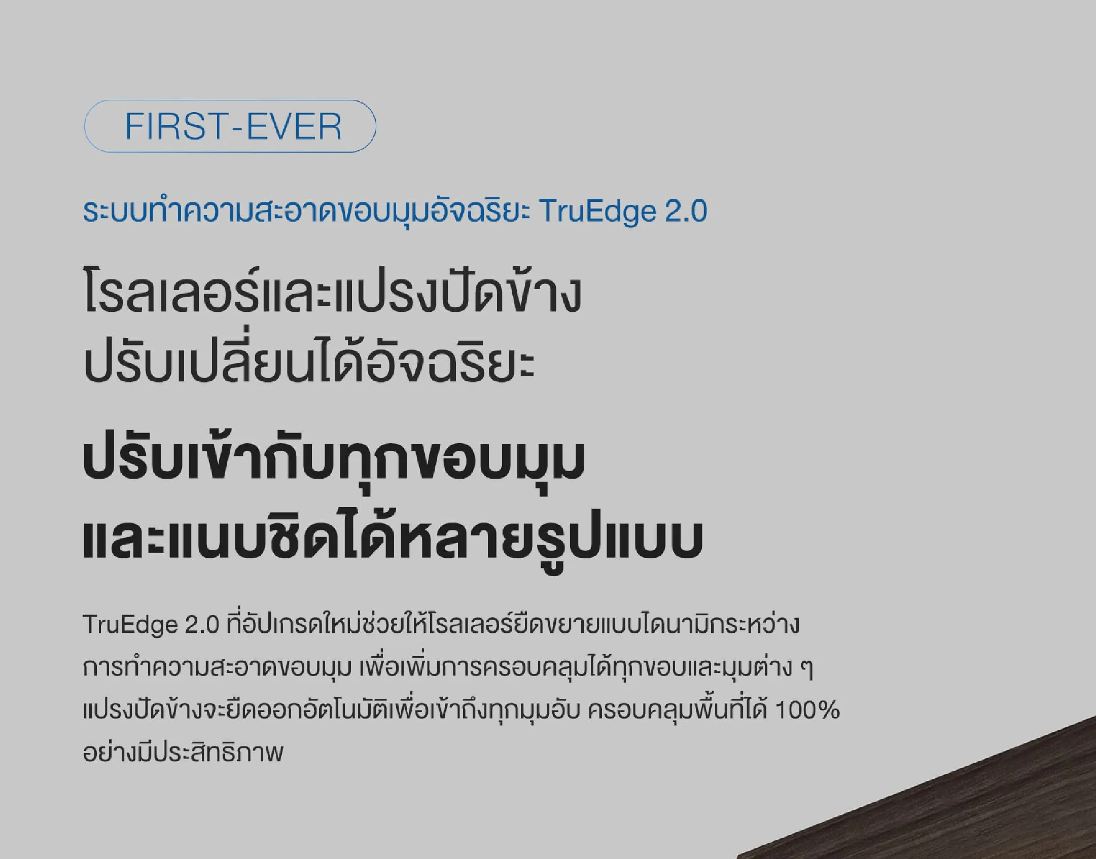 - ระบบปรับอุณหภูมิม็อบอัตโนมัติ : ม็อบจะถูกปรับอุณหภูมิให้เหมาะสมกับประเภทห้องและความสกปรกของพื้น ทำให้การถูพื้นมีประสิทธิภาพสูงสุด ไม่ว่าจะเป็นพื้นไม้ กระเบื้อง หรือหินอ่อน ก็สะอาดหมดจดทุกซอกมุม!