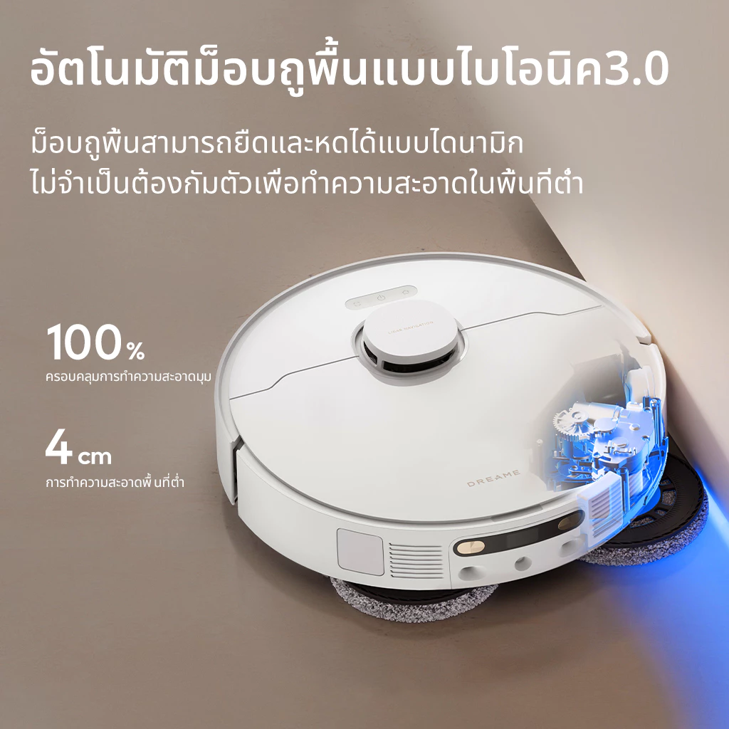 MopExtend RoboSwing 3.0 (ถูได้ลึกถึงซอกมุม!) : เคยไหมที่หุ่นยนต์ถูพื้นไปไม่ถึงมุมห้อง หรือติดเฟอร์นิเจอร์เตี้ยๆ? ปัญหานี้จะหมดไป! ด้วยม็อบที่ยืดหดอัตโนมัติ หมุนได้รอบทิศทาง และหดกลับได้ ทำให้ หุ่นยนต์ถูพื้น ตัวนี้เข้าถึงซอกมุมและช่องว่างต่างๆ ได้อย่างหมดจด แม้แต่ใต้โต๊ะ ขาเก้าอี้ หรือฐานรองผนังรอบบ้าน ก็สะอาดกริ๊บ คุณจะเห็นความแตกต่างของพื้นบ้านที่สะอาดหมดจดทุกตารางนิ้ว!