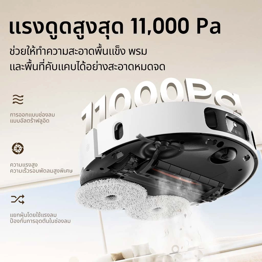 แรงดูดสูงสุด : 11,000Pa (พลังทำความสะอาดที่เหนือกว่าทุกสิ่ง!)