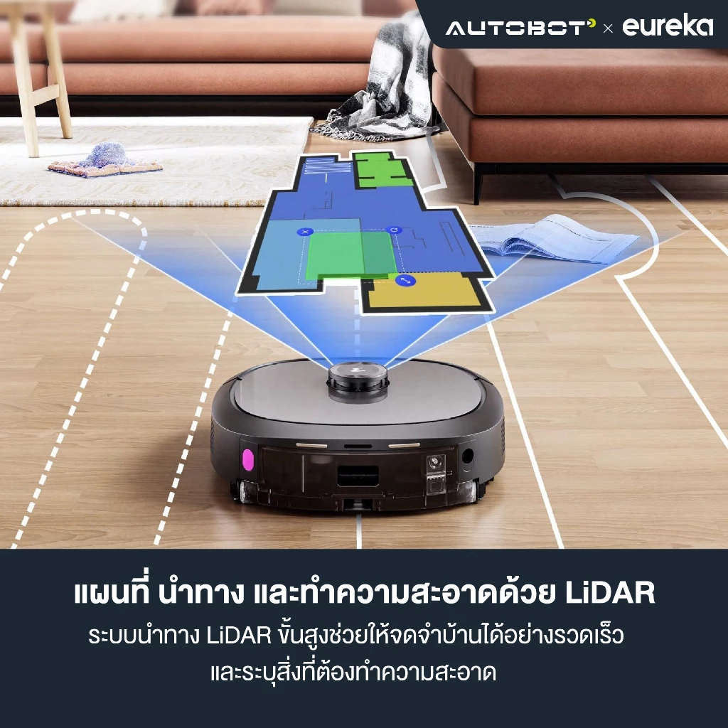 AUTOBOT x Eureka J20 คือที่สุดของนวัตกรรม หุ่นยนต์ทำความสะอาดบ้าน ที่ผสานพลังการดูดฝุ่นอันทรงพลังเข้ากับการถูพื้นแบบเรียลไทม์ ด้วยระบบ RollRenew Fresh Water Mopping System ทำให้คุณมั่นใจได้ว่าทุกครั้งที่ J20 ทำงาน พื้นบ้านของคุณจะได้รับการทำความสะอาดด้วยน้ำสะอาดเสมอ ไม่ต้องกังวลเรื่องคราบสกปรกตกค้างอีกต่อไป! พร้อมเทคโนโลยี AI อัจฉริยะที่ช่วยให้ J20 สามารถวิเคราะห์ แยกแยะสิ่งกีดขวาง และทำความสะอาดได้อย่างแม่นยำทุกซอกทุกมุม