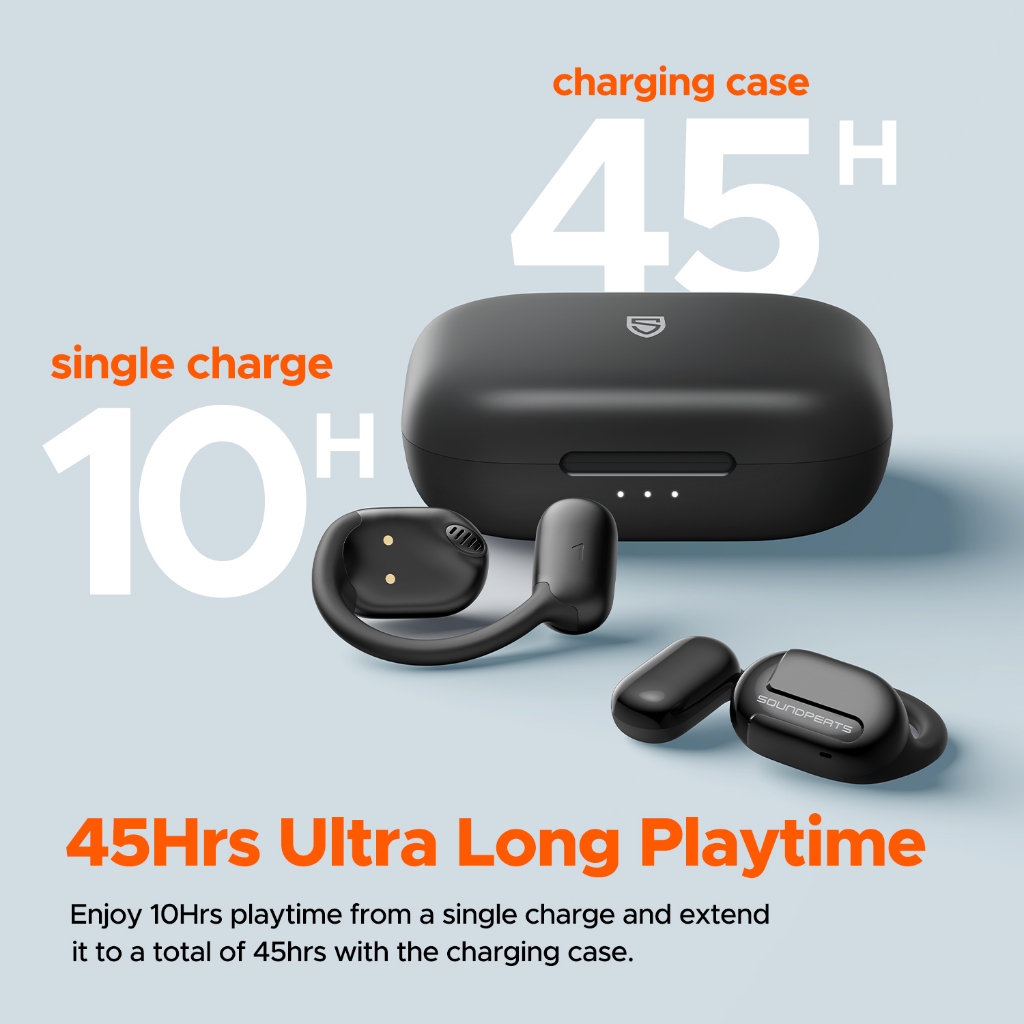 - ดีไซน์ Open-Ear ไม่ต้องยัดเข้ารูหู: สวมใส่สบายตลอดวัน ไม่เจ็บหู ไม่รู้สึกอึดอัด ทำให้คุณได้ยินเสียงรอบข้างได้อย่างชัดเจน ไม่พลาดการสื่อสารกับคนรอบตัว หรือการแจ้งเตือนสำคัญต่างๆ ปลอดภัยยิ่งขึ้นเมื่อใช้งานในที่สาธารณะ เช่น ใส่วิ่งบนถนน หรือใช้ในออฟฟิศ