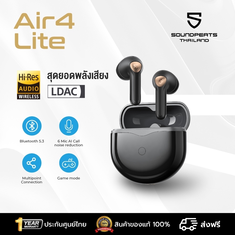 มั่นใจได้ในคุณภาพและการบริการ! SOUNDPEATS Air4 Lite เป็น หูฟังไร้สายของแท้ 100% พร้อม รับประกัน 12 เดือน โดยศูนย์ไทย หากสินค้ามีปัญหาภายใน 15 วันแรก เรายินดี เคลมตัวใหม่ให้ทันที (โปรดส่งเคลมพร้อมกล่องบรรจุภัณฑ์และอุปกรณ์อย่างครบถ้วน) เงื่อนไขการรับประกันเป็นไปตามที่บริษัทกำหนด เพื่อความอุ่นใจในการใช้งานของคุณ หากมีข้อสงสัยหรือปัญหาใดๆ ทีมงานของเราพร้อมให้ความช่วยเหลือเสมอ!