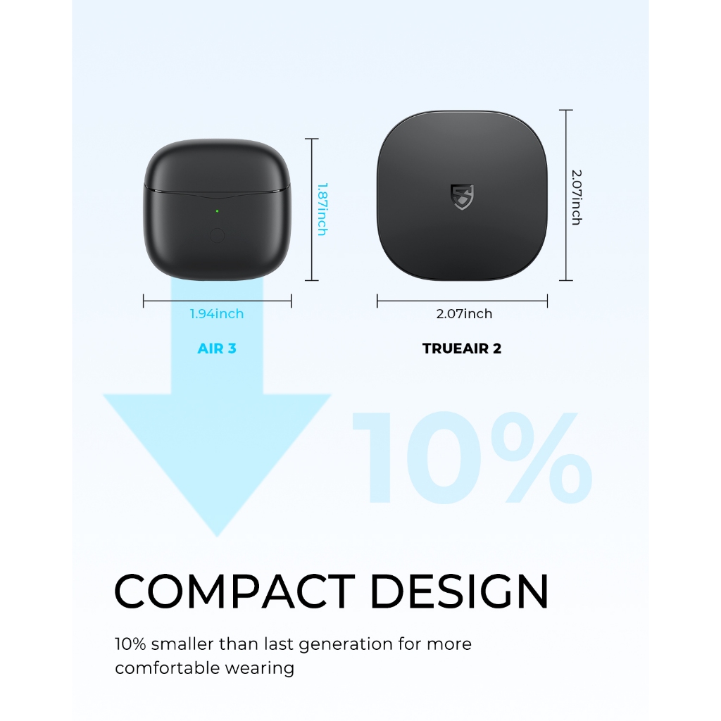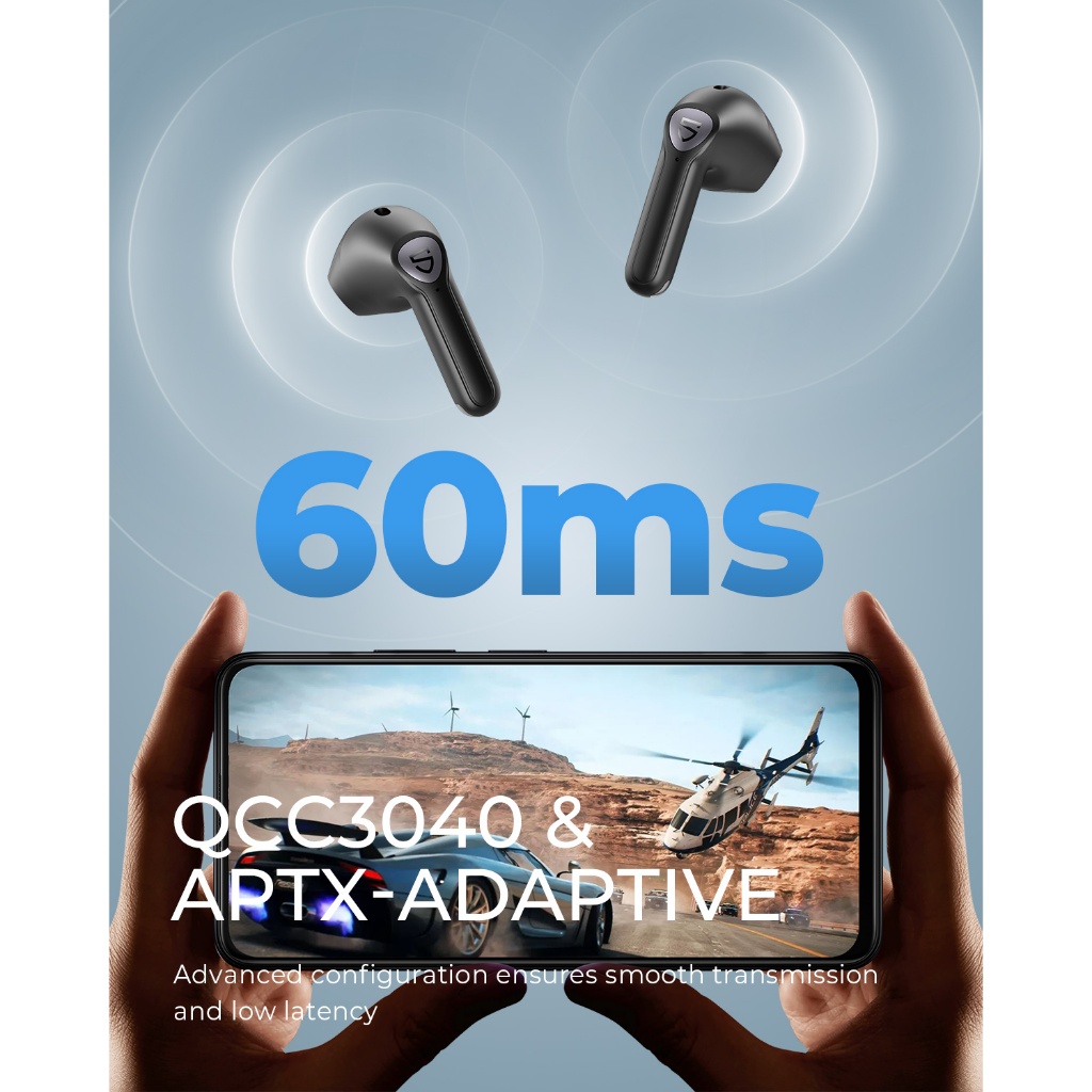 SoundPEATS Air3 คือ หูฟังไร้สาย ที่ออกแบบมาเพื่อตอบโจทย์ทุกไลฟ์สไตล์ของคุณ ไม่ว่าจะเป็นการฟังเพลง เล่นเกม หรือคุยโทรศัพท์ ด้วยเทคโนโลยี Bluetooth 5.2 และชิปเซ็ต Qualcomm® QCC3040 ทำให้คุณได้สัมผัสกับคุณภาพเสียงที่คมชัดระดับ HD พร้อม เบสหนัก เต็มอิ่ม และการเชื่อมต่อที่เสถียรสุดๆ