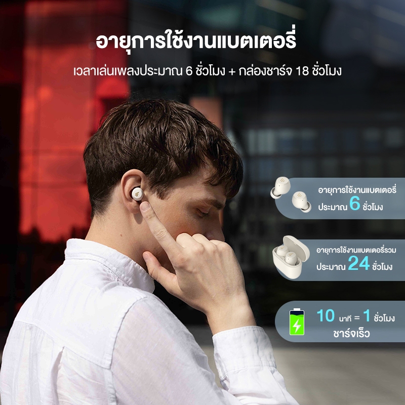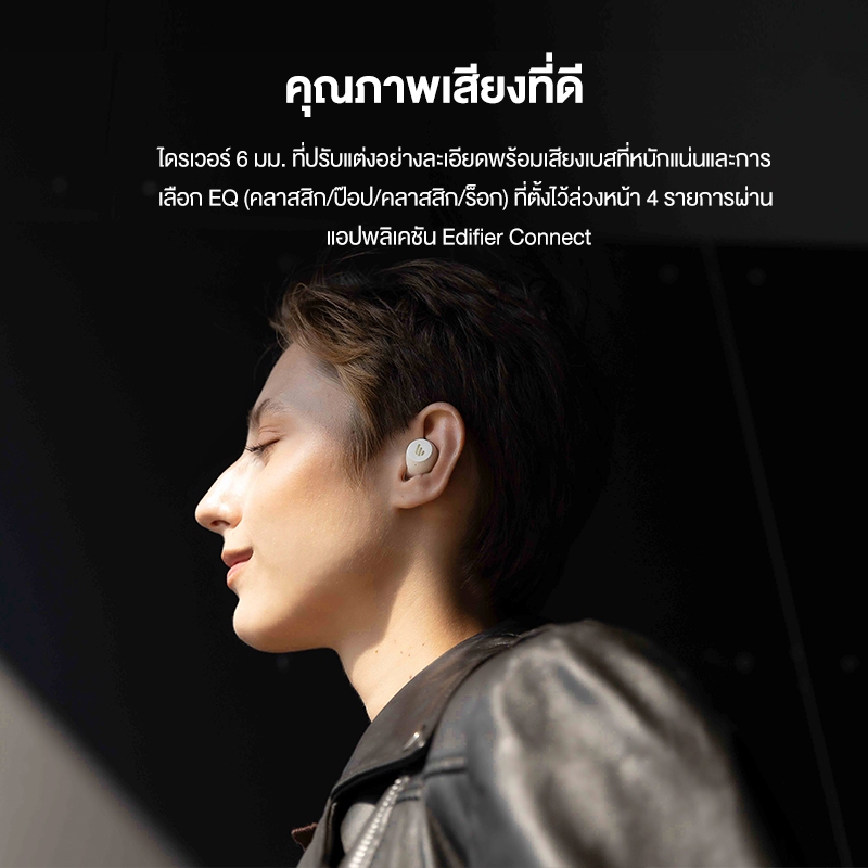 สัมผัสประสบการณ์เสียงที่เหนือกว่าด้วยไดรเวอร์ขนาด 6 มม. ที่ปรับแต่งมาอย่างละเอียด ให้เสียงเบสที่หนักแน่นถึงใจ พร้อมตัวเลือก EQ 4 แบบ (Classic, Pop, Classic, Rock) ที่คุณสามารถปรับแต่งได้ตามใจชอบผ่านแอปพลิเคชัน Edifier Connect นอกจากนี้ ยังมีโหมดเกมมิ่งที่ลดเวลาแฝงเหลือเพียง 60ms ให้คุณสนุกกับการเล่นเกมได้อย่างเต็มที่โดยไม่มีดีเลย์ หมดห่วงเรื่องแบตเตอรี่เพราะ Edifier X3 Lite ใช้งานได้ยาวนานถึง 6 ชั่วโมงต่อการชาร์จหนึ่งครั้ง และชาร์จเพิ่มได้อีก 18 ชั่วโมงจากกล่องชาร์จ รวมเป็น 24 ชั่วโมง! พร้อมมาตรฐาน IP55 ที่กันฝุ่นและเหงื่อ ให้คุณลุยได้ทุกกิจกรรม ไม่ว่าจะออกกำลังกายหรือเดินทาง