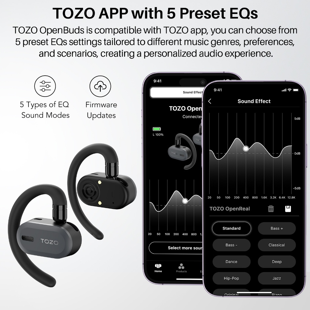 TOZO Open Buds หูฟังไร้สาย Open-ear กันน้ำ IPX6 เบสหนัก ใช้งานยาวนาน เหมาะสำหรับออกกำลังกายและทุกกิจกรรม!
