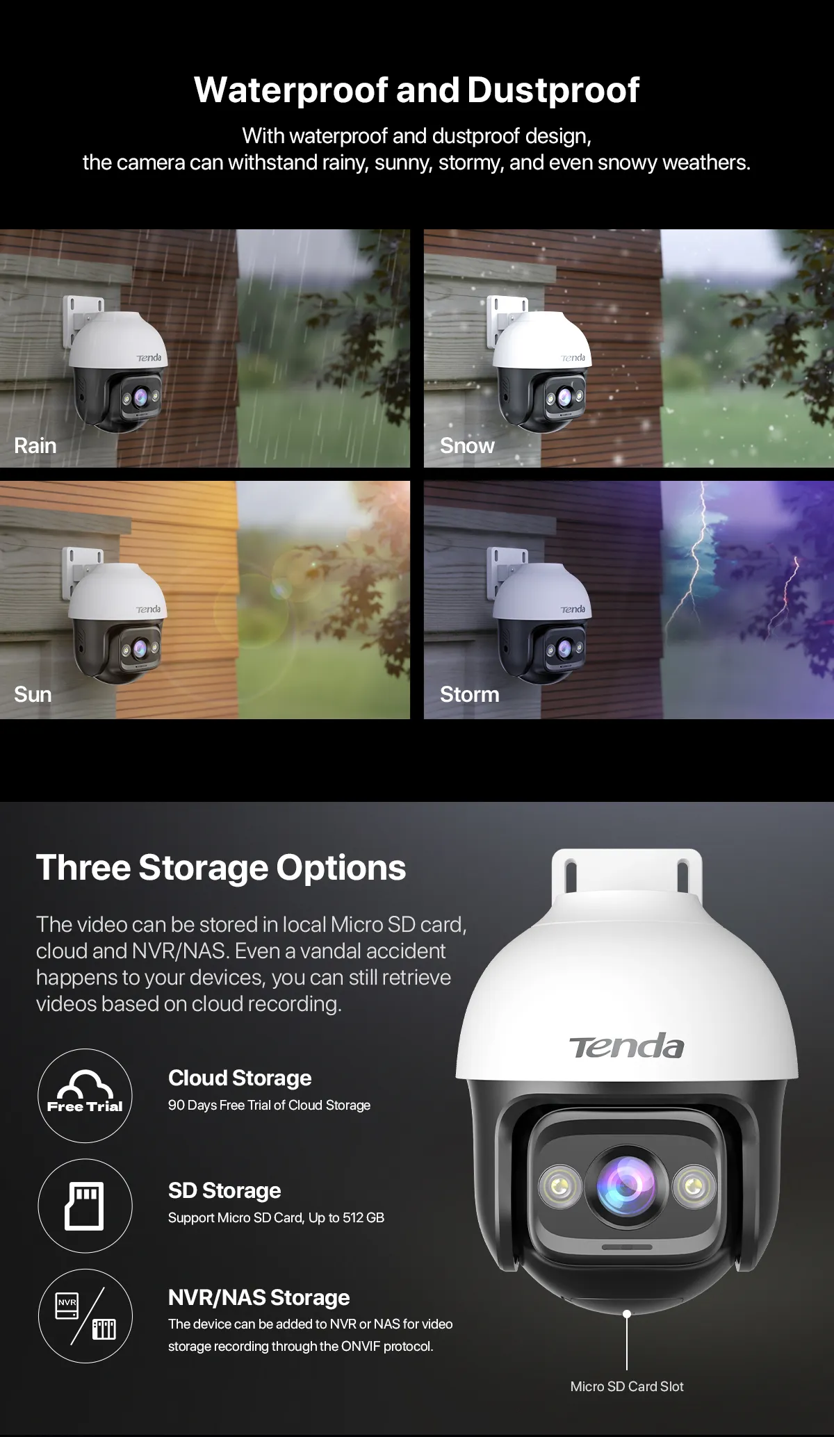 A: ใช่ครับ กล้อง Tenda RH3 มีมาตรฐานกันน้ำกันฝุ่น IP66 ซึ่งหมายความว่าสามารถทนทานต่อฝนและฝุ่นละอองได้ดี เหมาะสำหรับการใช้งานกลางแจ้งครับ