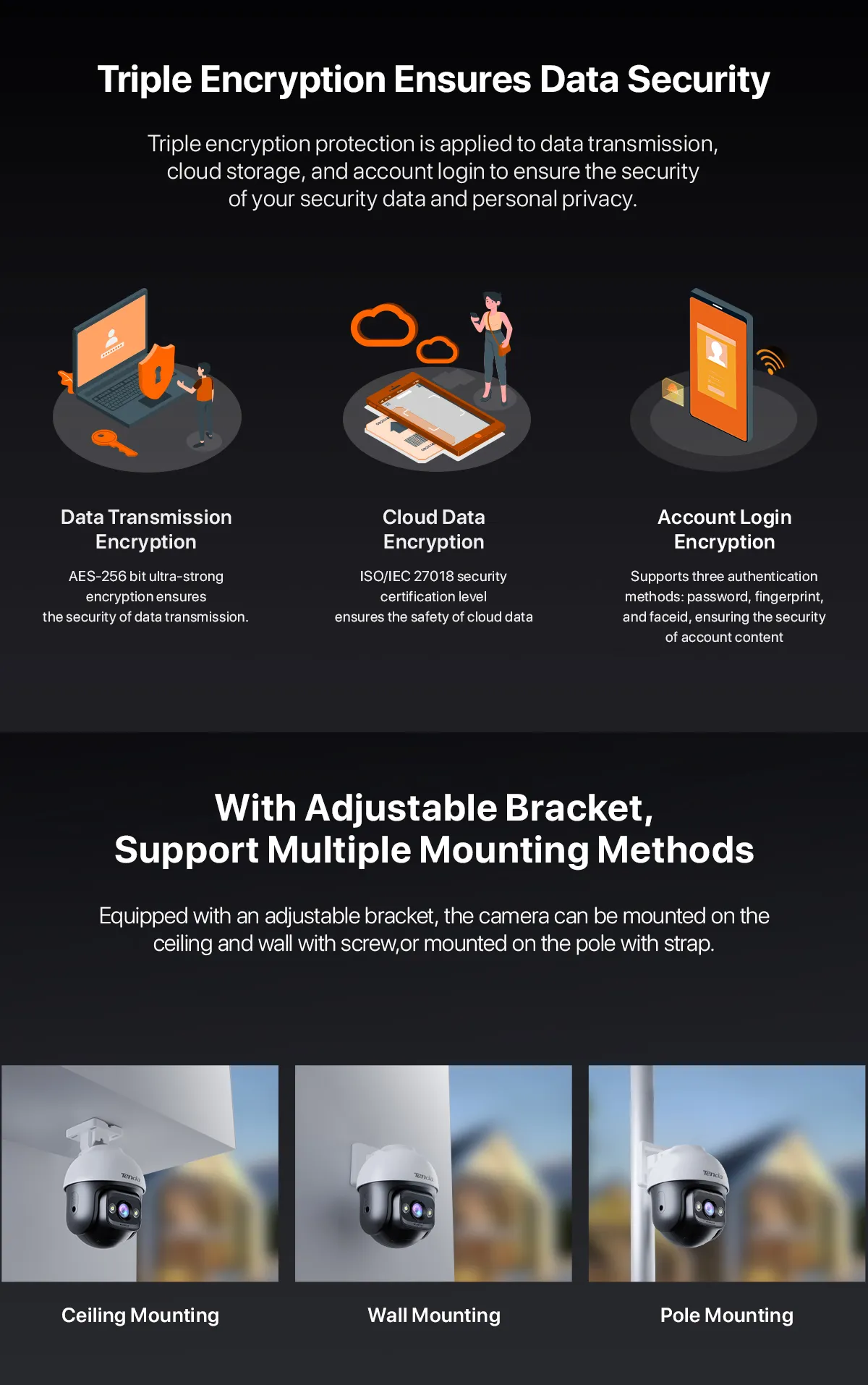 - ติดตั้งง่ายได้หลายวิธี: มาพร้อมตัวยึดแบบปรับได้และอุปกรณ์เสริมครบชุด ทำให้คุณสามารถติดตั้งกล้องได้หลากหลายวิธี ไม่ว่าจะเป็นบนผนัง เพดาน หรือเสา ก็ทำได้ง่ายๆ ด้วยตัวเอง.