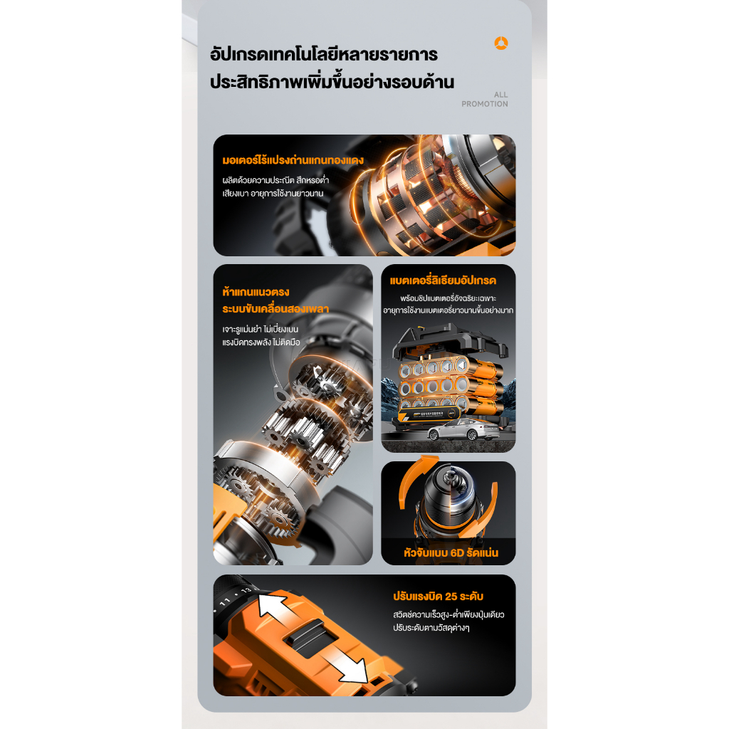 JIAPU สว่านไร้สาย 3 ระบบ เหมาะสำหรับทุกคนที่ต้องการเครื่องมืออเนกประสงค์คุณภาพสูง ไม่ว่าจะเป็น: