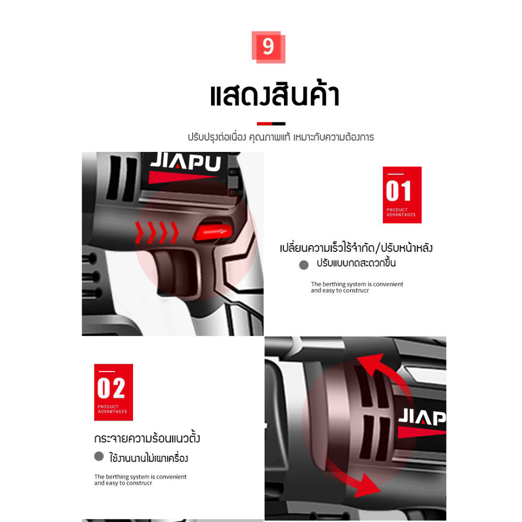 JIAPU MT-21V คือสุดยอดนวัตกรรมสว่านโรตารี่ไร้สายที่ออกแบบมาเพื่อตอบโจทย์ทุกงานช่าง ไม่ว่าจะเป็นมืออาชีพหรือคนที่ชอบงาน DIY ด้วยขุมพลังมอเตอร์ไร้แปรงถ่านทองแดงบริสุทธิ์นำเข้า คุณจึงหมดปัญหาเรื่องการเปลี่ยนแปรงถ่านและมอเตอร์ไหม้ ประหยัดพลังงานได้อย่างชัดเจน และยืดอายุการใช้งานแบตเตอรี่ให้ยาวนานยิ่งขึ้น