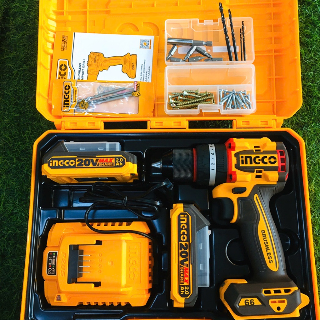 INGCO CIDLI20668 สว่านไขควงคลัช 3 ระบบ เจาะ ขันสกรู กระแทก ไร้สาย 20V แรงบิดสูง 66Nm (แถมฟรี! แบต 2 ก้อน + อุปกรณ์ 47 ชิ้น)