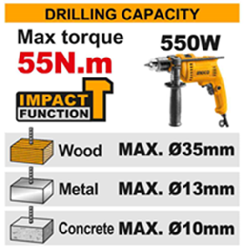 INGCO CIDLI205581 สว่านไขควงคลัช 3 ระบบ เหมาะสำหรับ:
