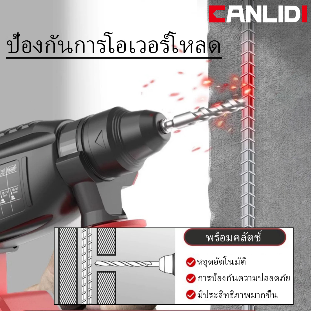 CANLIDI รุ่น MT-21V สว่านโรตารี่ สว่านไร้สาย มอเตอร์ไร้แปรงถ่าน สว่านกระแทกไร้สาย สว่านโรตารี่ไร้สาย เจาะปูน
