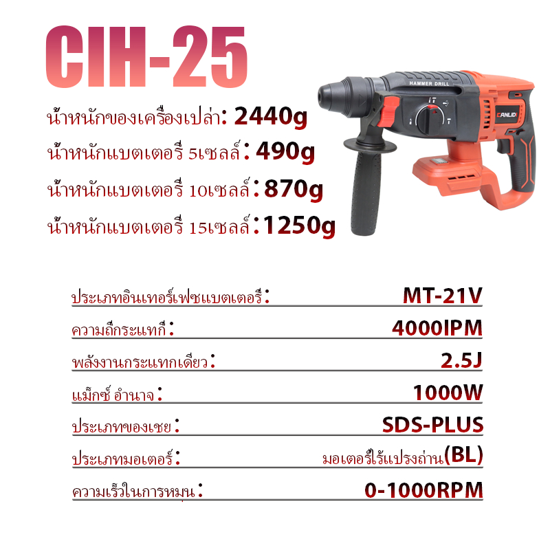 CANLIDI MT-21V สว่านโรตารี่ไร้สาย เหมาะสำหรับ: