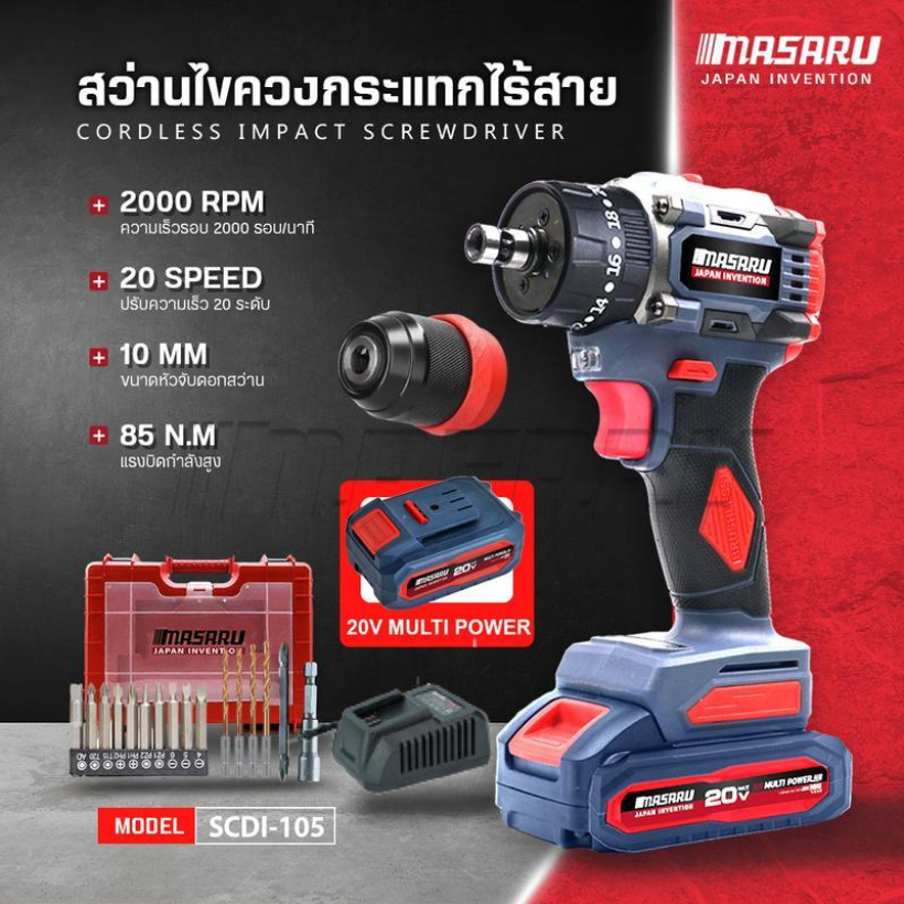 - เลือก MASARU SCDI-105 หากคุณ... ต้องการ สว่าน 3 ระบบ ตัวเดียวจบ ครอบคลุมทั้งงานเจาะไม้ เจาะเหล็ก ขันสกรู และที่สำคัญคือ ต้องการเจาะปูน ได้ด้วย! รุ่นนี้เหมาะสำหรับ ช่างมืออาชีพ ที่ทำงานหลากหลาย หรืองานซ่อมแซมบ้านที่จำเป็นต้อง เจาะผนังปูน บ่อย ๆ