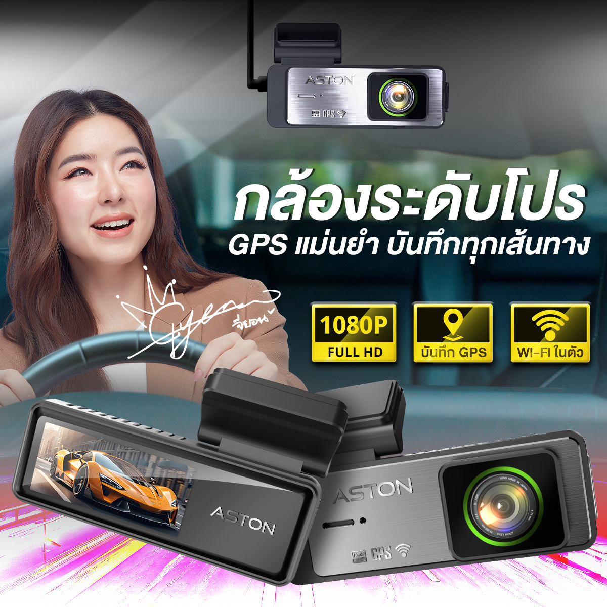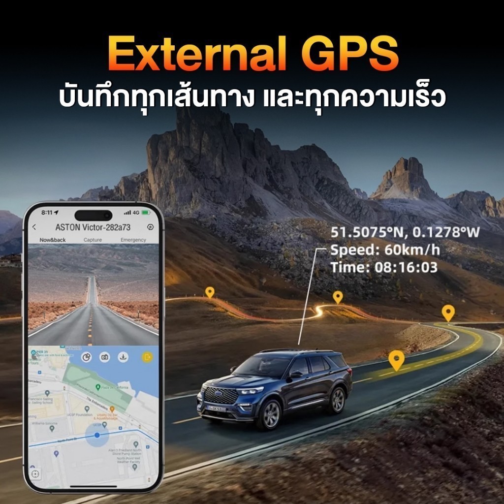 ASTON Victor กล้องติดรถยนต์ GPS Wi-Fi บันทึกความเร็ว ดูผ่านแอปได้ง่าย ๆ