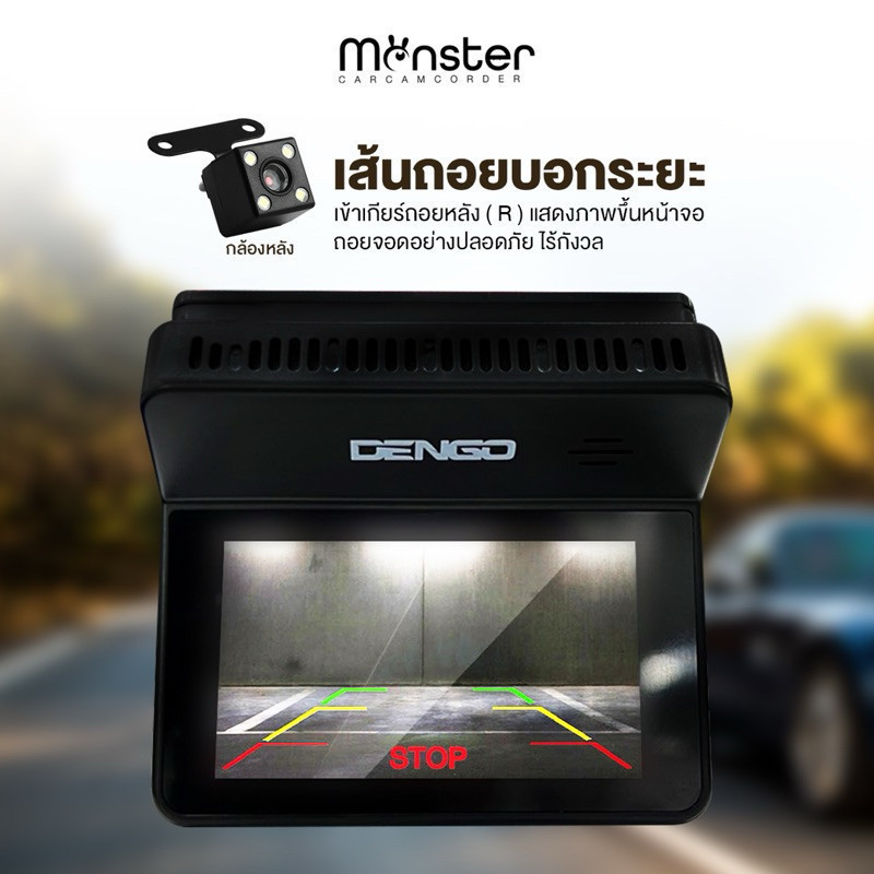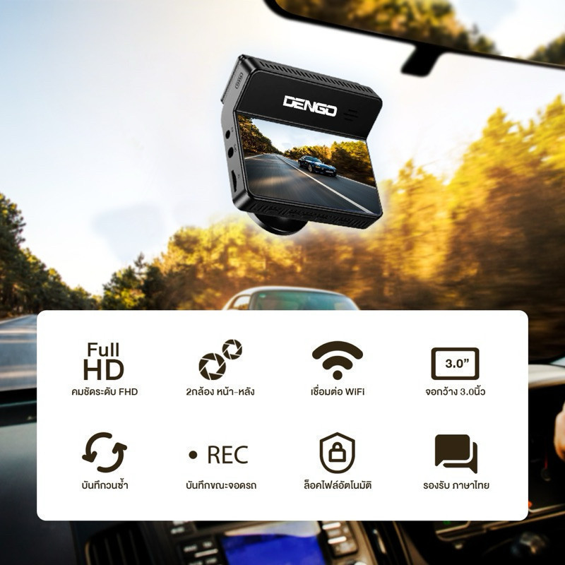DENGO Monster กล้องติดรถ Wifi ดูผ่านมือถือ 2 กล้องหน้าหลัง ฟังก์ชั่นครบ รับประกันสินค้า 1 ปี