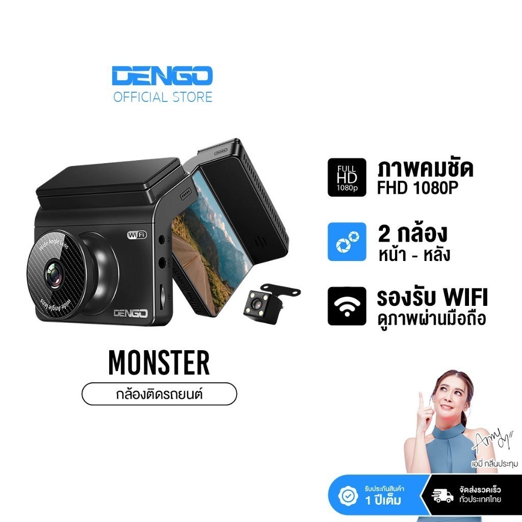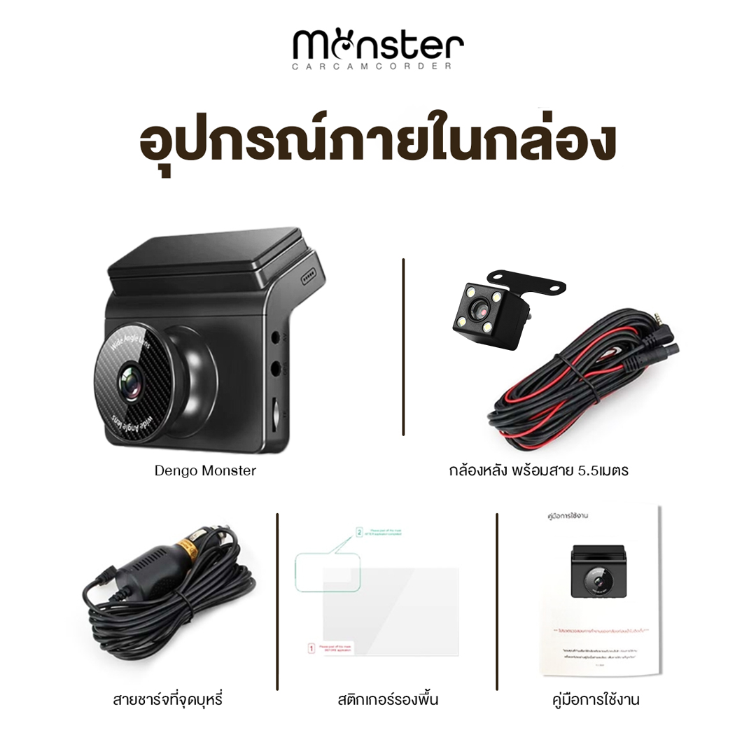 DENGO Monster กล้องติดรถยนต์ Wifi กล้องหน้า-หลังชัดเป๊ะ! ดูผ่านมือถือได้ทันที อุ่นใจทุกการเดินทาง