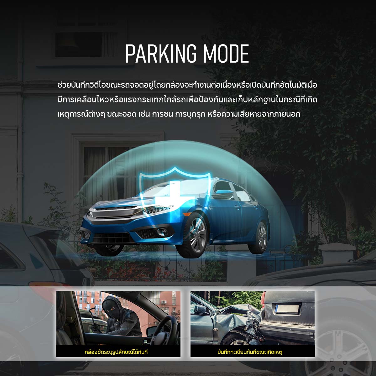Q: กล้องรุ่นนี้มีโหมดบันทึกตอนจอดรถ (Parking Mode) ไหม?