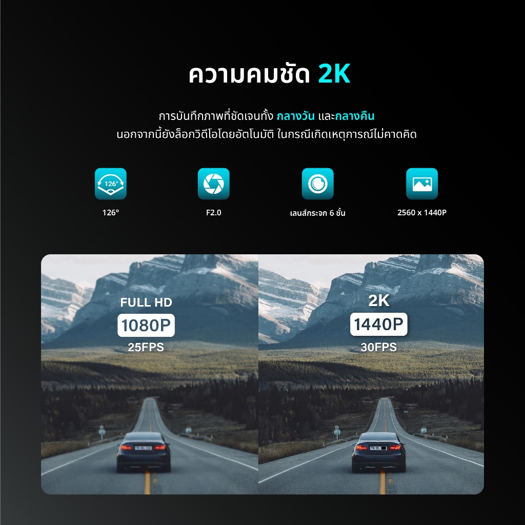 A: แนะนำให้ใช้ MicroSD Card 16GB ขึ้นไป และต้องมีความเร็วระดับ Class v30 ขึ้นไป เพื่อรองรับการบันทึกวิดีโอความละเอียด 2K ได้อย่างต่อเนื่องครับ