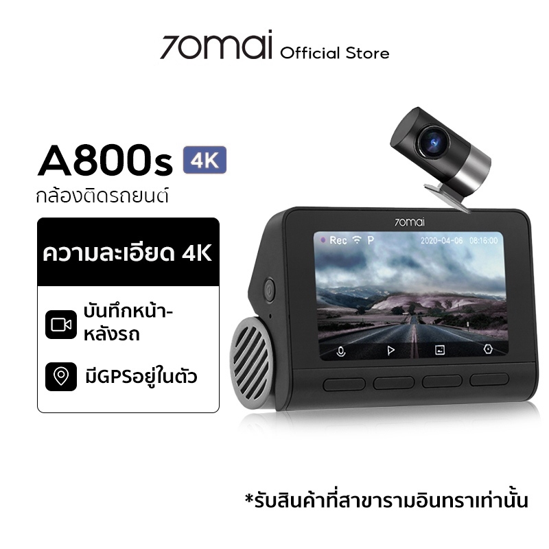 70mai A800S กล้องติดรถยนต์ 4K Dual-Vision กล้องหน้ารถคมชัด กล้องวงจรปิดติดรถยนต์ พร้อม GPS และ ADAS