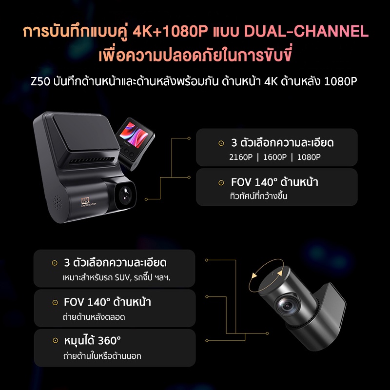 | คุณสมบัติ | DDPAI Z50 | DDPAI Z50 Dual | หมายเหตุ |