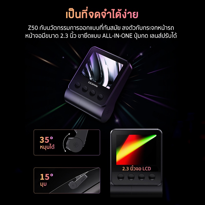 | คุณสมบัติ | DDPAI Z50 | DDPAI Z50 GPS | DDPAI Z50 Dual | DDPAI Z50 GPS Dual |