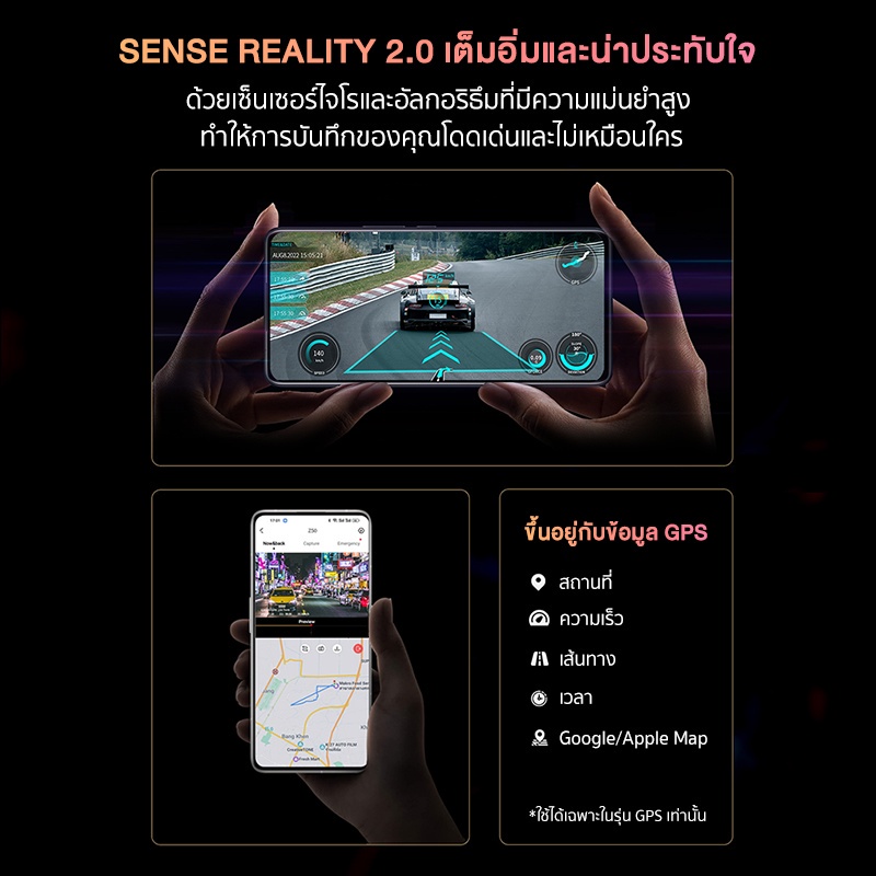 | เซ็นเซอร์ | Sony IMX415 (กล้องหน้า), G-sensor 3 แกน | Sony IMX415 (กล้องหน้า), G-sensor 3 แกน | ล็อกวิดีโอฉุกเฉินอัตโนมัติ |