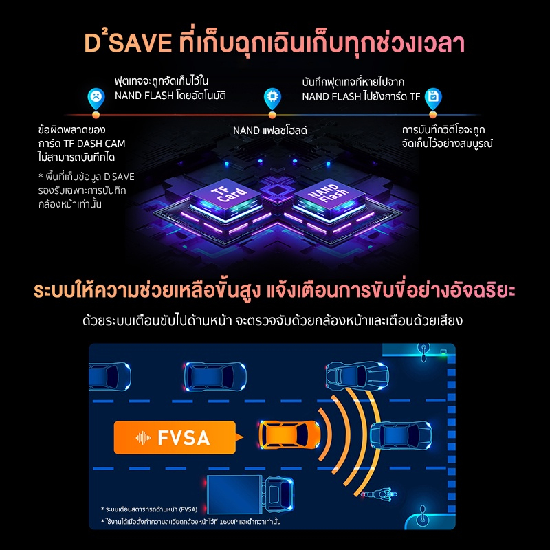 ไม่ว่าจะกลางวันแสงจ้า หรือกลางคืนที่มืดมิด เทคโนโลยี NightVIS และเลนส์รูรับแสง F1.75 จะช่วยให้ภาพกลางคืนสว่างและชัดเจนอย่างเหลือเชื่อ และที่สำคัญ หมดห่วงเรื่องไฟล์ภาพหาย! ด้วยระบบ D2save หากเมมโมรี่การ์ดมีปัญหา ระบบจะสลับไปบันทึกในแฟลช NAND ภายในเพื่อซ่อมแซมและเก็บไฟล์ฉุกเฉินไว้ ทำให้คุณมั่นใจได้ว่าทุกเหตุการณ์สำคัญจะถูกบันทึกไว้อย่างแน่นอน