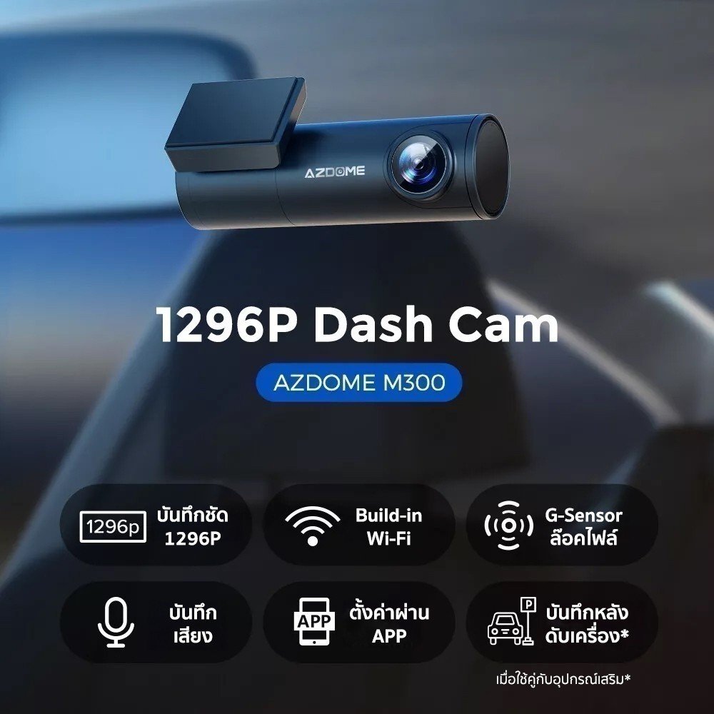 AZDOME M300 กล้องติดรถ 1296P Full HD มุมกว้าง 150 องศา WIFI ทนแดดสูงด้วย Capacitor รับประกัน 1 ปี